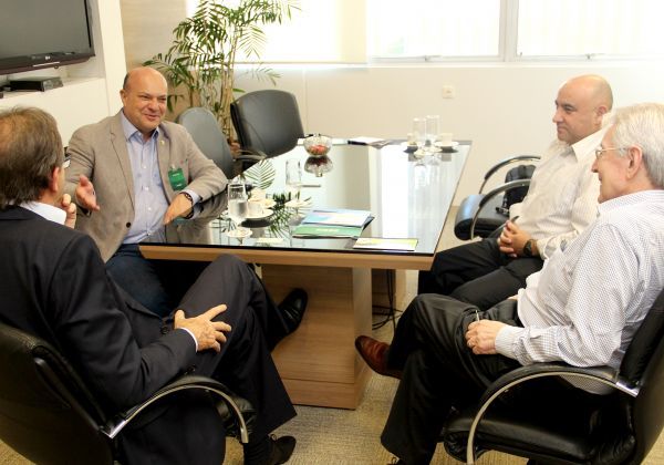 O presidente do CREA-SC Eng. Civil e Seg. Trab. Carlos Alberto Kita Xavier e o superintendente Eng. Civil Luiz Henrique Pellegrini estiveram em audiência na tarde de hoje (01/12), com o presidente da FIESC, Glauco José Cortê e com o vice-presidente, Mario Cezar de Aguiar.