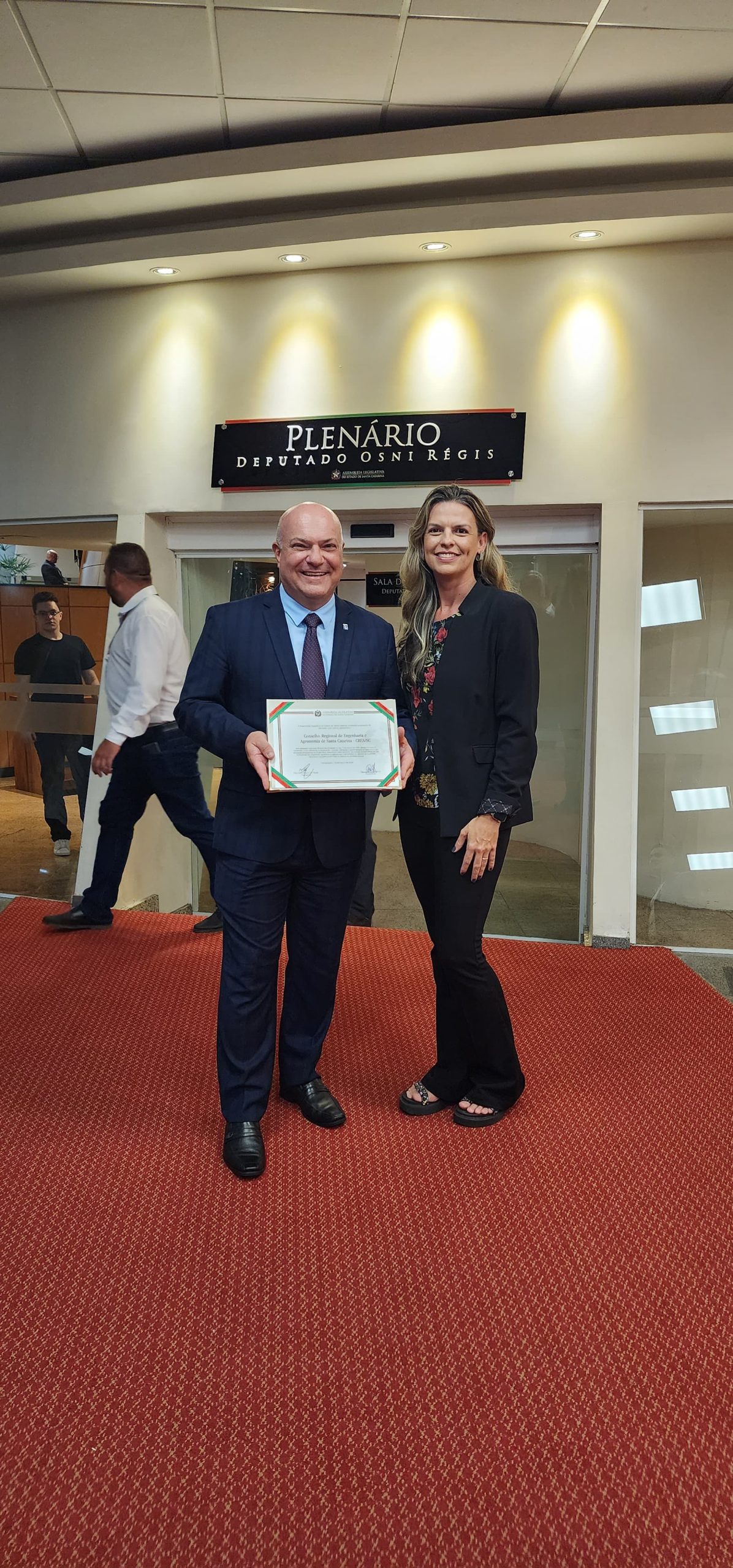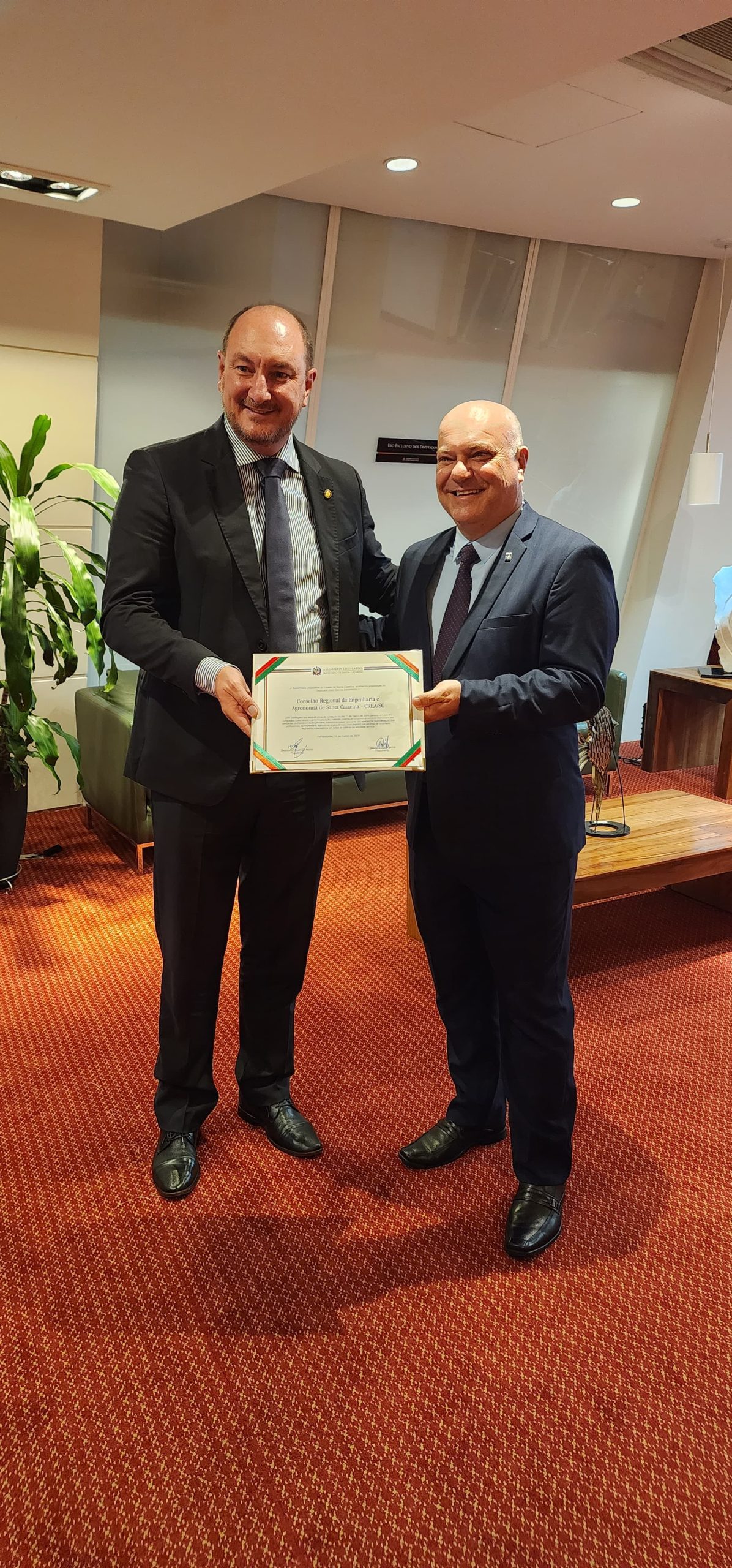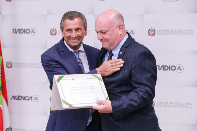 O presidente do Crea-SC, Kita Xavier, recebeu a homenagem, ressaltando que a entidade foi reconhecida nacionalmente pelo Conselho Federal de Engenharia e Agronomia (CONFEA) como o Crea mais eficiente e eficaz do país. “Eu sempre falo: se é o mais eficiente e eficaz é o melhor Crea do Brasil. Porque a gente trabalha em prol dos nossos profissionais e em benefício da sociedade catarinense”, completa o engenheiro.