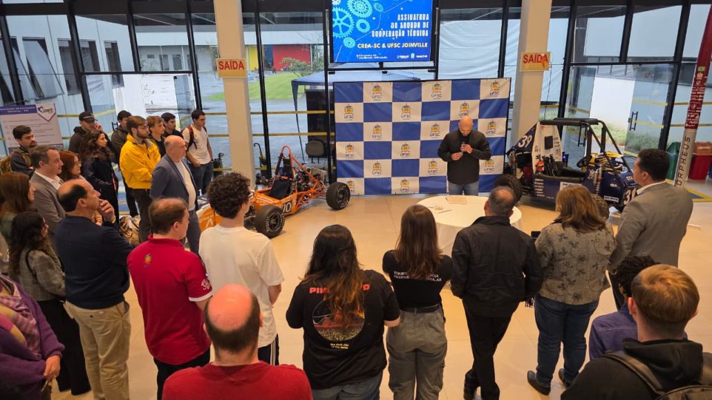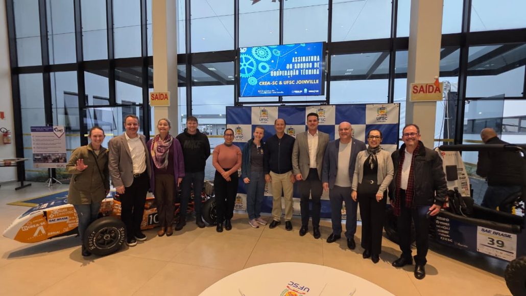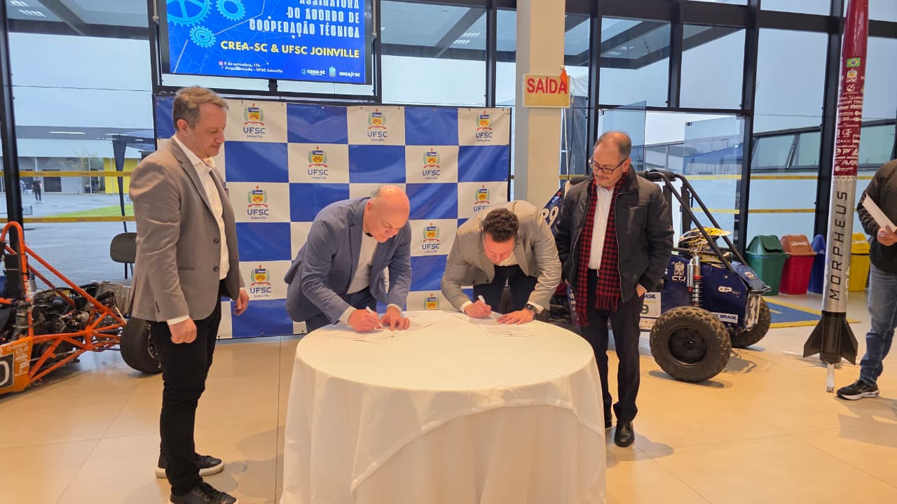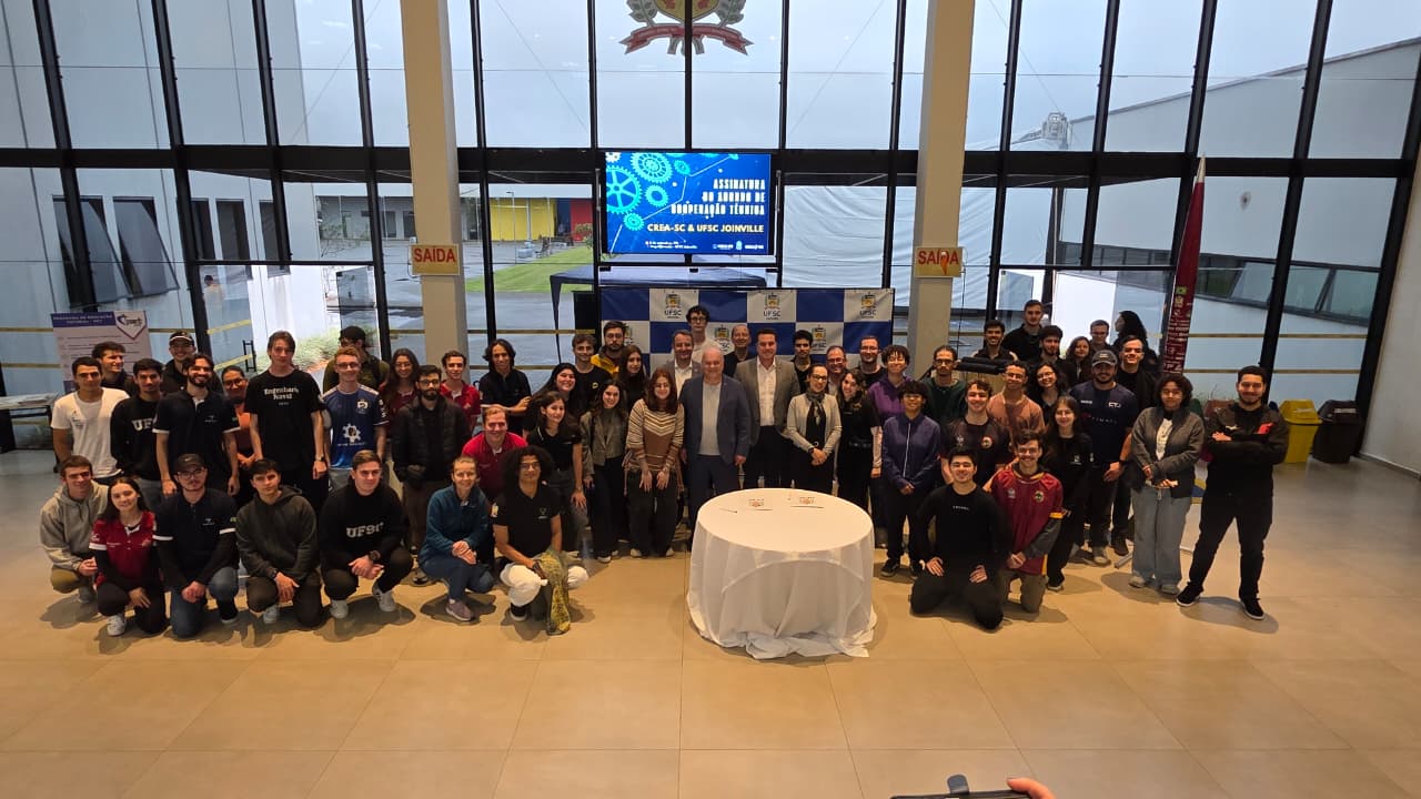 Na última segunda-feira (8), o CREA-SC e o Centro Tecnológico da Universidade Federal de Santa Catarina (UFSC) em Joinville oficializaram Acordo de Cooperação Técnica, com o objetivo de promover o desenvolvimento técnico, profissional e comportamental dos estudantes dos cursos vinculados ao Sistema Confea/Crea.