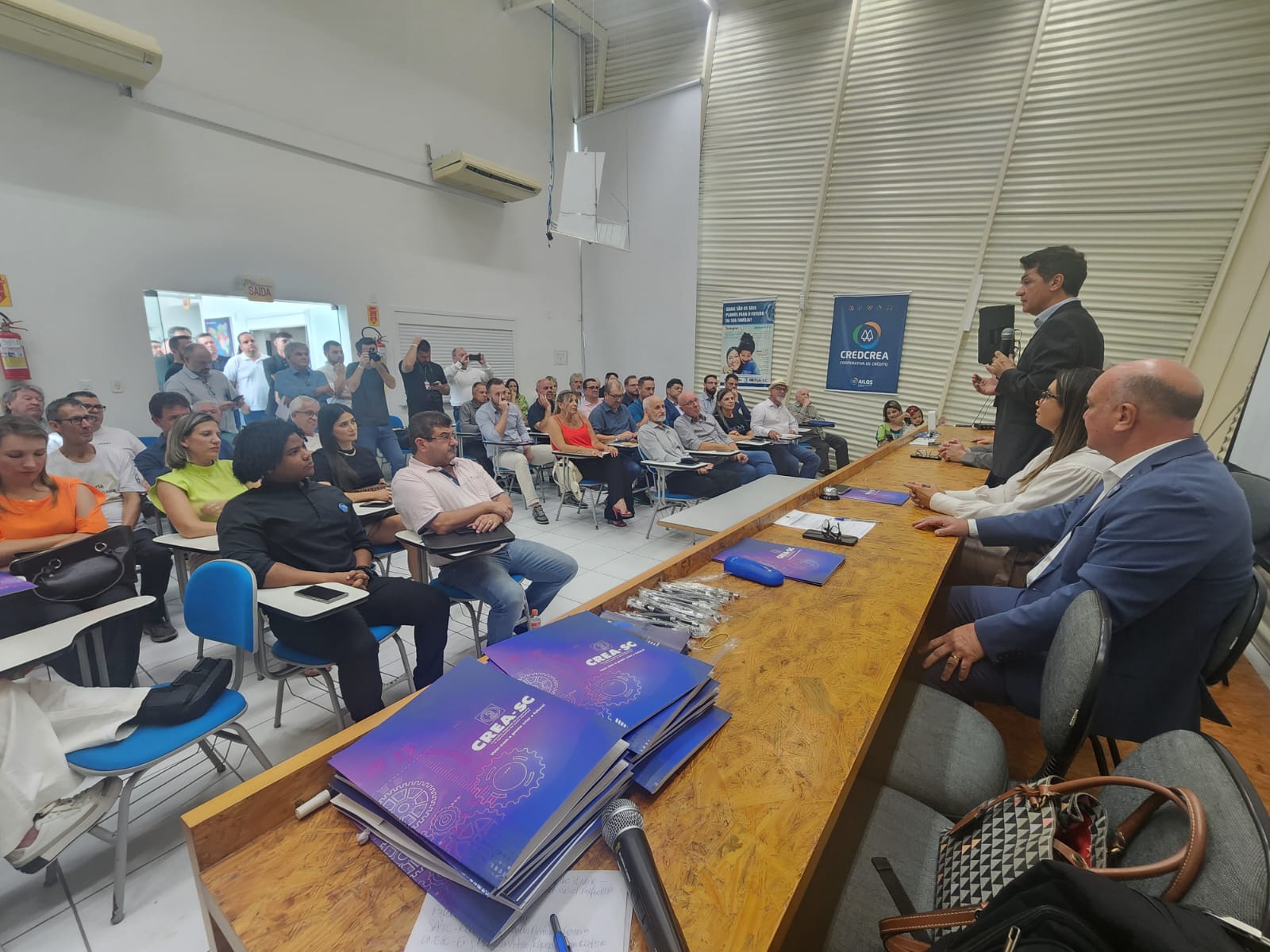 O evento contou com a presença do prefeito municipal, Clésio Salvaro; do vice-presidente do Confea, Eng. Eletric. Evânio Ramos Nicoleit; do Reitor da SATC, Prof. Carlos Antonio Ferreira; do representante da UNESC, Eng. Marcio Vito; do secretário geral da prefeitura, Arleu da Silveira; além do presidente do Crea-SC, Eng. Kita Xavier e da Diretora Regional da Inspetoria, Eng. Civil Kamila Rodrigues da Silva.
