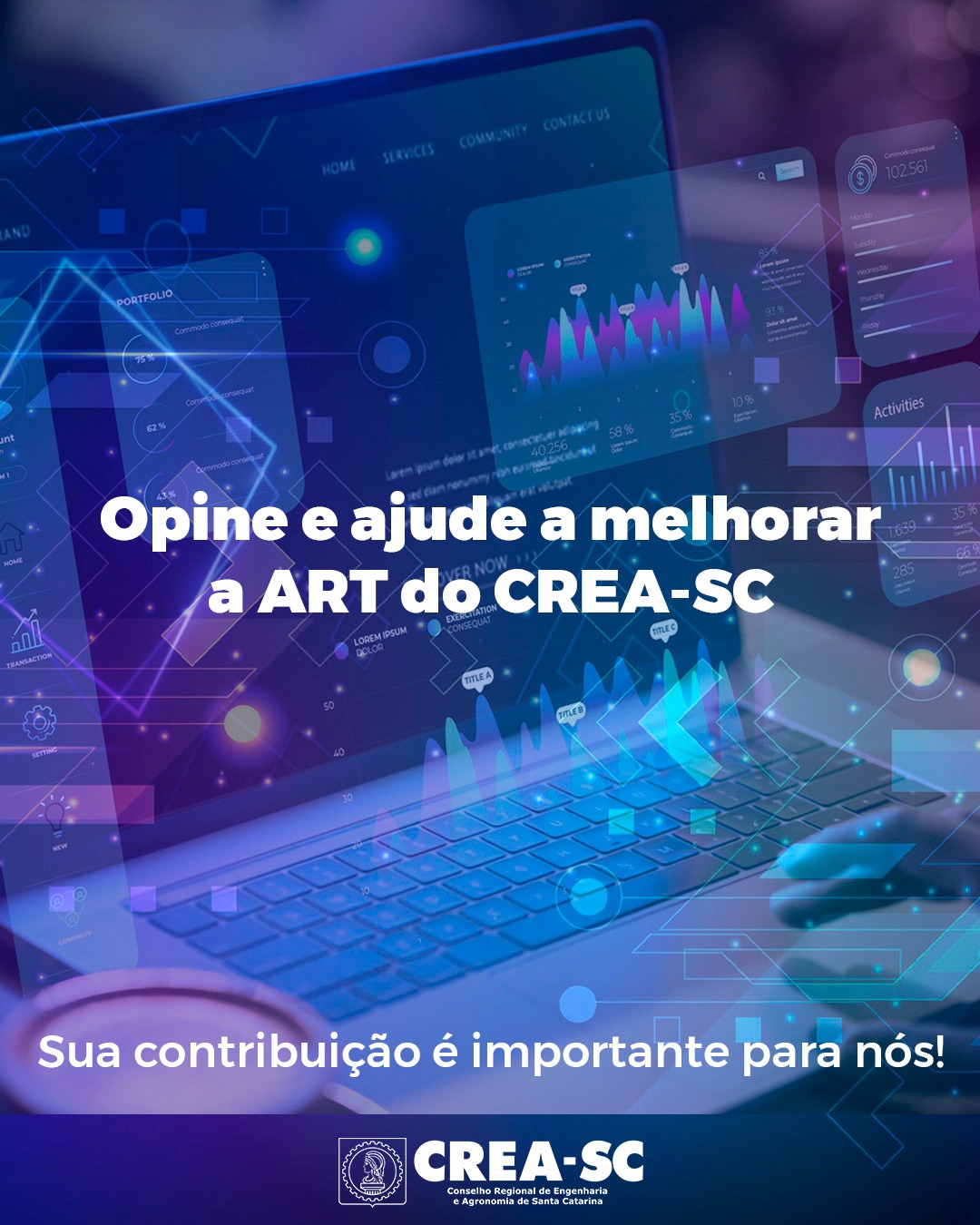 O CREA-SC está iniciando o desenvolvimento da nova ferramenta de Anotação de Responsabilidade Técnica (ART) e convida os profissionais registrados a participarem da pesquisa de opinião sobre o tema. O objetivo é aprimorar esse serviço digital, garantindo maior qualidade, usabilidade e eficiência na emissão do documento.