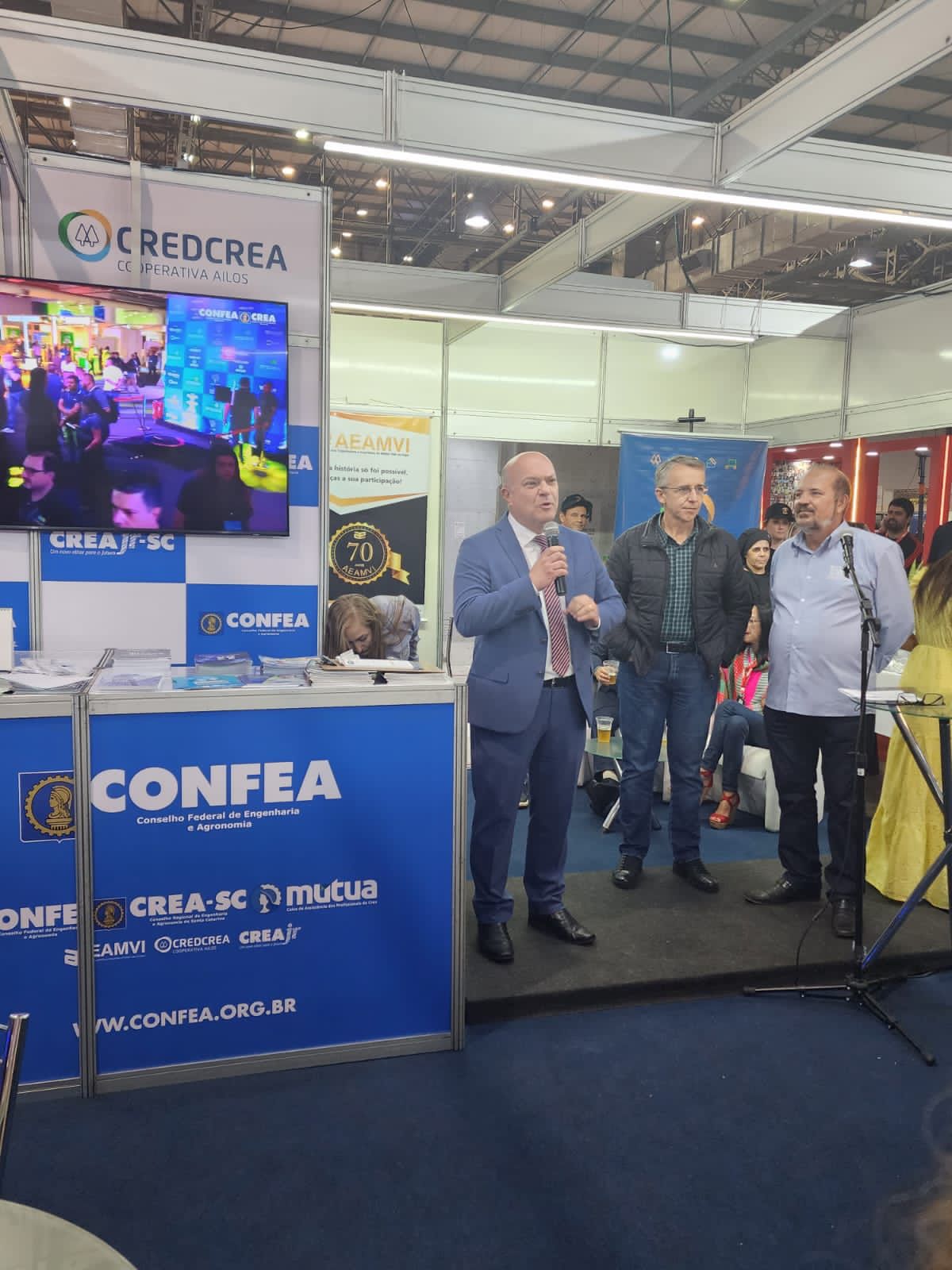 O presidente do Crea-SC, Eng. Civil e Seg. do Trab. Kita Xavier, esteve na abertura do evento e conversou com profissionais e lideranças da região. O prefeito de Blumenau, Mário Hildebrandt, esteve presente no estande do Conselho. A diretora do Crea-SC na região, Engª Florestal Glaucia Gebien, também marcou presença na abertura da feira.