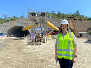A presidente em exercício do Crea-SC, Eng. Agr. Angela Cristina Paviani, esteve na manhã do último sábado, 27.8, em uma visita técnica ao Contorno Viário de Florianópolis, a maior obra de infraestrutura em andamento no Brasil. O evento foi promovido pela regional do Instituto Brasileiro do Concreto (Ibracon/SC) com objetivo de promover a integração entre os profissionais e estudantes de engenharia com o ambiente de uma grande obra, possibilitando a visualização prática da produção e aplicação do concreto projetado, manuseio de diferentes tipos de aditivos e os processos de controle tecnológico do concreto.