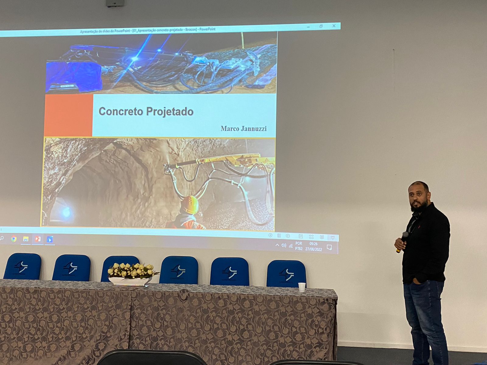 O evento que faz parte das comemorações dos 50 anos de fundação do Ibracon iniciou no auditório da Unisul, na Pedra Branca, com uma apresentação da empresa Arteris, a gerente de sustentabilidade e meio ambiente do Contorno Viário, Daniela Bussmann, falou sobre o projeto e do andamento da obra. Na sequência Marco Jannuzzi, representante do grupo Aterpa explanou sobre requisitos técnicos do concreto para aplicação em túneis.
