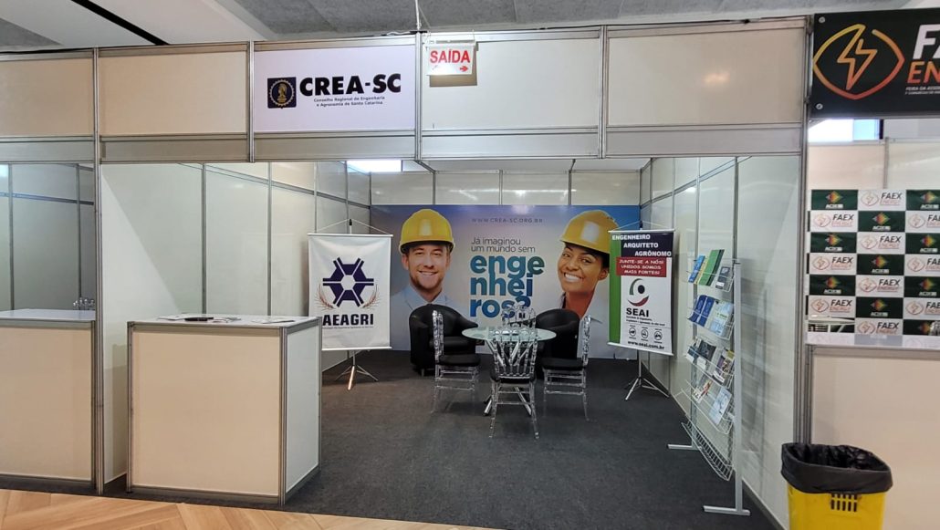 O Crea-SC está com um estande montado para receber os profissionais e também para valorização das entidades da região, com a participação da Sociedade de Engenharia, Arquitetura e Agronomia do Alto Irani (SEAI) e Associação dos Engenheiros Agrônomos do Alto Irani (Aeagri).