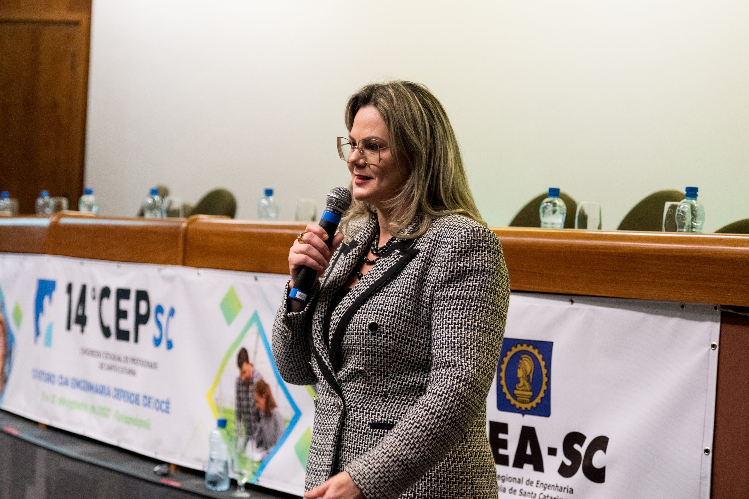 A presidente em exercício do Crea-SC, Eng. Agr. Angela Paviani ressaltou a importância do evento para a engenharia, agronomia e geociências. “Destaco o caráter democrático e participativo do CEP, por meio da realização de 22 encontros regionais preparatórios, permitindo a presença expressiva de 800 profissionais catarinenses. Santa Catarina é um estado de vanguarda com participação expressiva em todos os CNPs, apresentando propostas inovadoras e de excelência”.