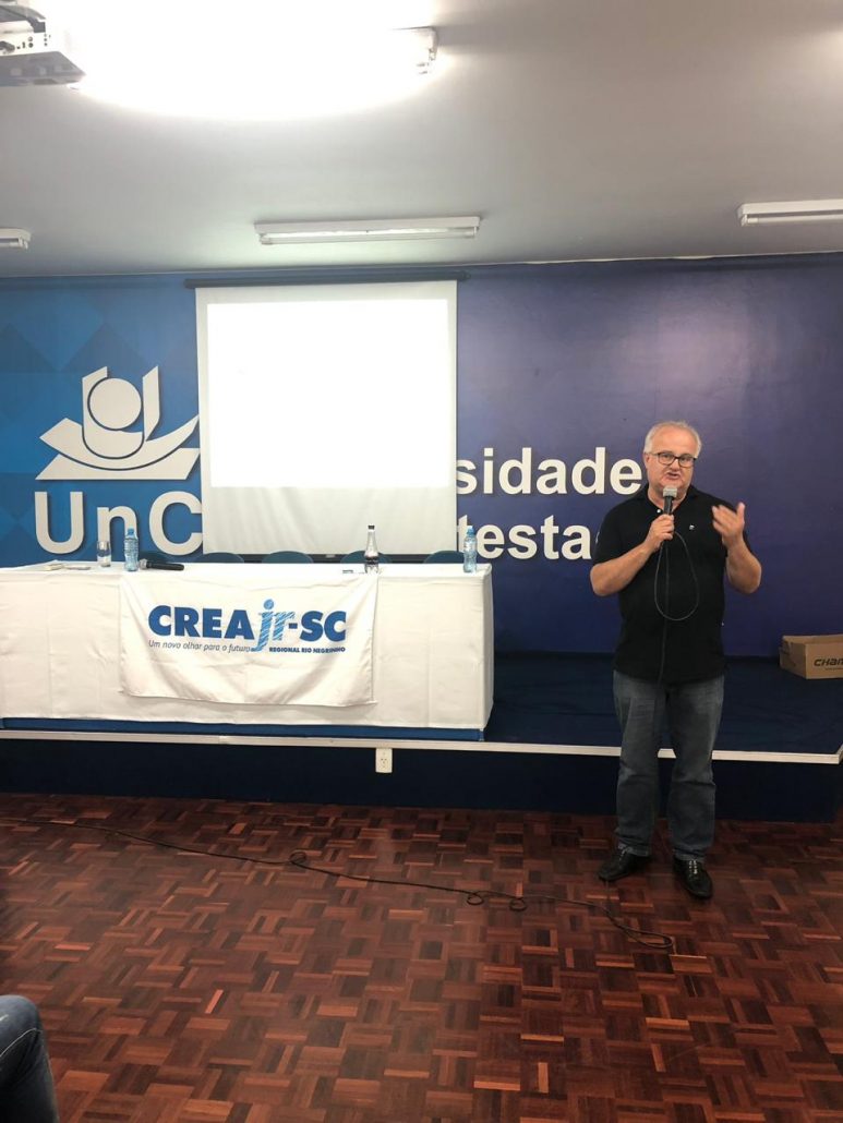 “Qual a minha futura relação com o Sistema Confea/Crea e Mútua” foi o tema das palestras promovidas pelo CREA-SC, no dia 5 de dezembro, para formandos da Udesc e da Univille, em São Bento do Sul e, no dia 6 de dezembro, para formandos da Universidade do Contestado (UnC), em Mafra.