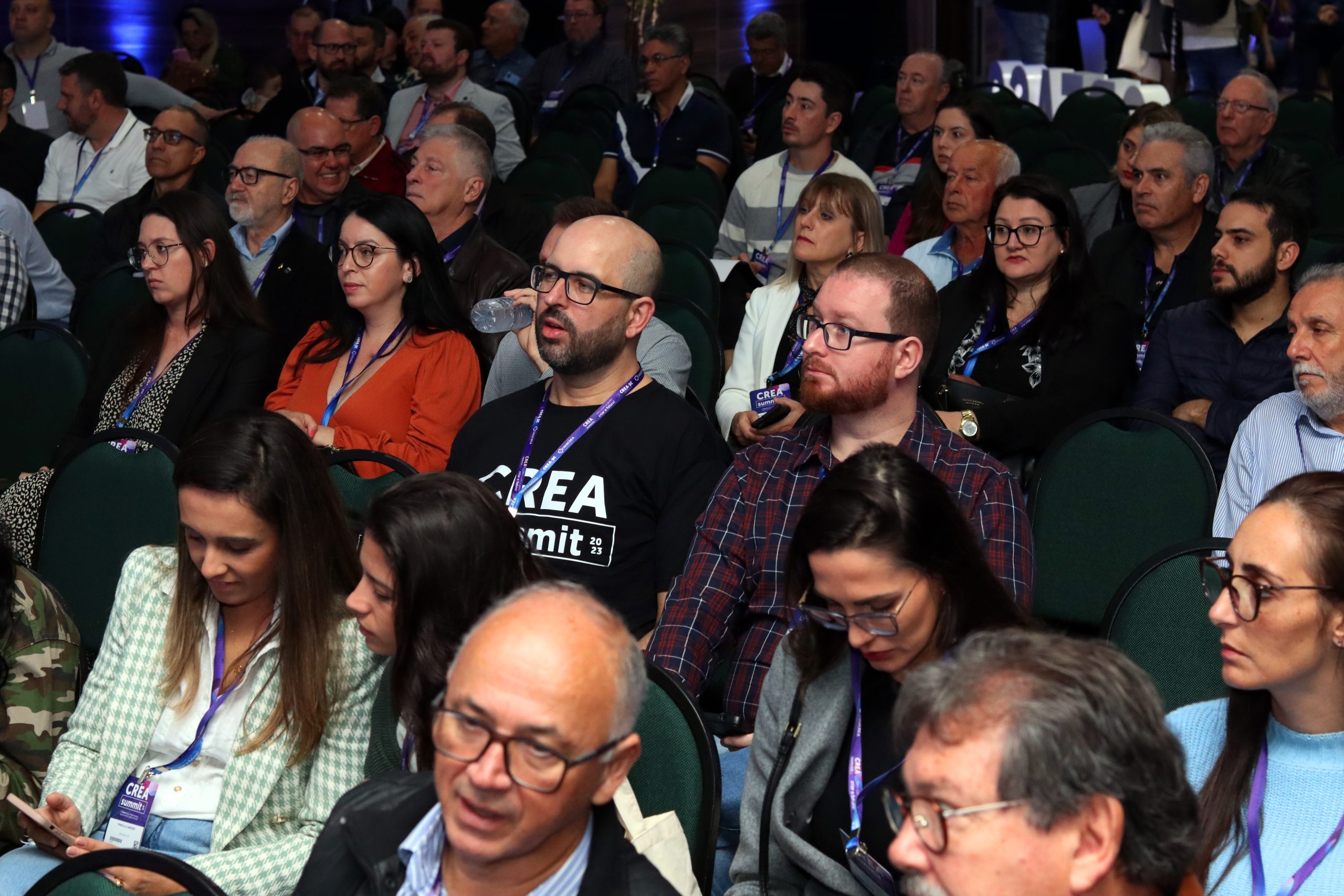 Dois dias de grandes ideias, muitos exemplos e cases de inovação, network, inspirações e lançamento de programas, durante a realização do Crea Summit 2023, que reuniu mais de 500 profissionais e liderancas do setor, na última sexta e sábado, 7 e 8 de julho em Florianópolis.