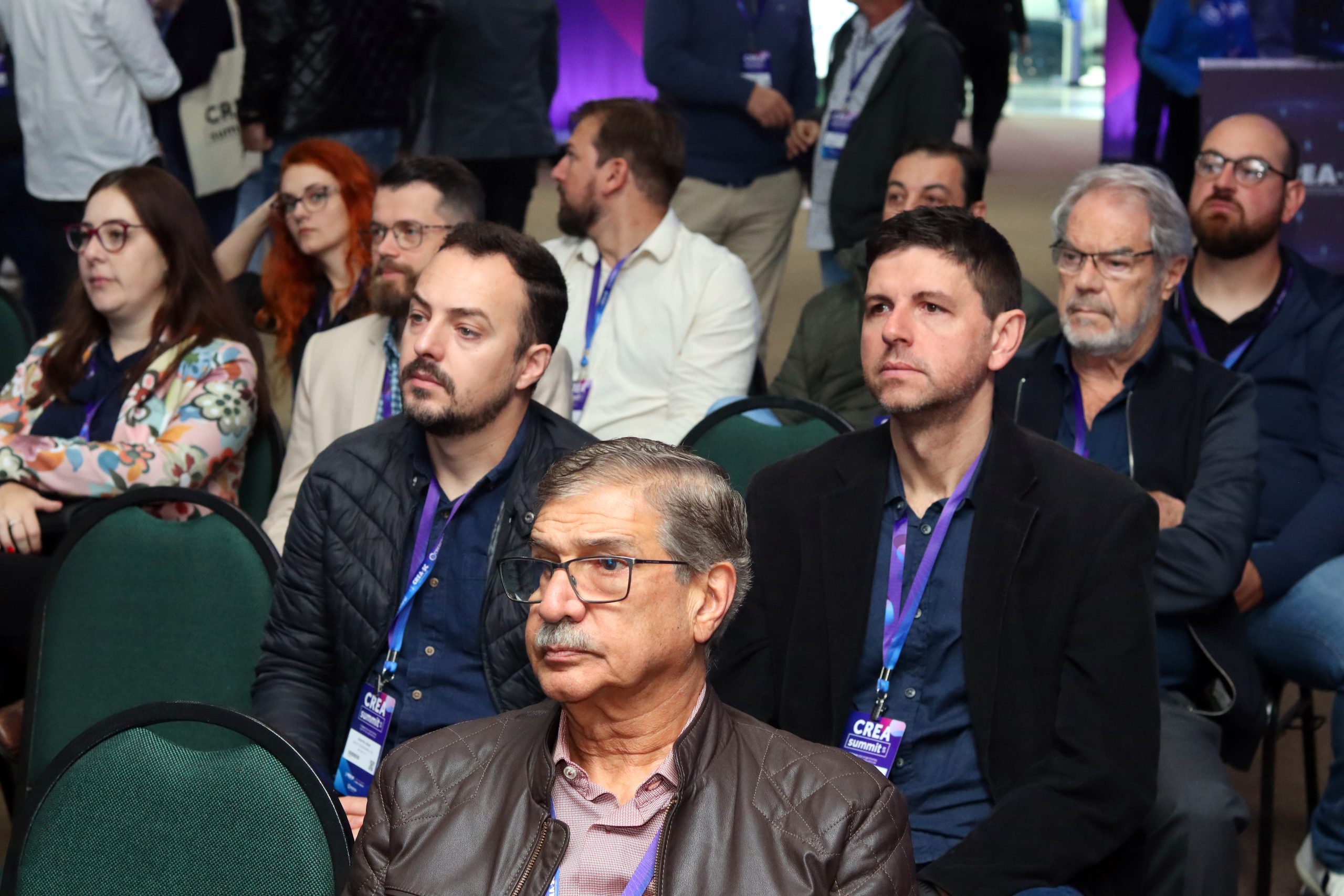 Prestigiaram abertura do Crea Summit o Secretário de Ciência, Tecnologia e Inovação do Estado, Eng. Marcelo Fett, o Eng. José Wilson Alexandre, vice-presidente da CredCrea, o vice-presidente de Marketing da ACATE, Walmoli Gerber Junior, o Diretor Técnico do Sebrae/SC, Luciano Pinheiro, a coordenadora nacional do programa CreaJr, Eng. Química Ingrid Reinehr, a Eng. Daiana Mara Puntel, coordenadora do comitê mulher e diretora regional da inspetoria de Concórdia, o Eng. Valdir Silveira Ávila, coordenador do CDER e a Eng. Nubia Ferreira Luz, coordenadora adjunta do colégio de diretores regionais.