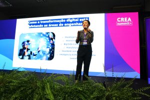 A engenheira Ingrid Reinehr, coordenadora nacional do Creajr, ressaltou os diferentes níveis e a troca de inovação dos Creajrs em cada estado, além do espírito de mudança e questionamentos dos acadêmicos.