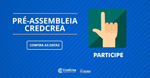 Confira a agenda de Pré-Assembleias da CredCrea em: http://www.credcrea.coop.br/noticia/1047