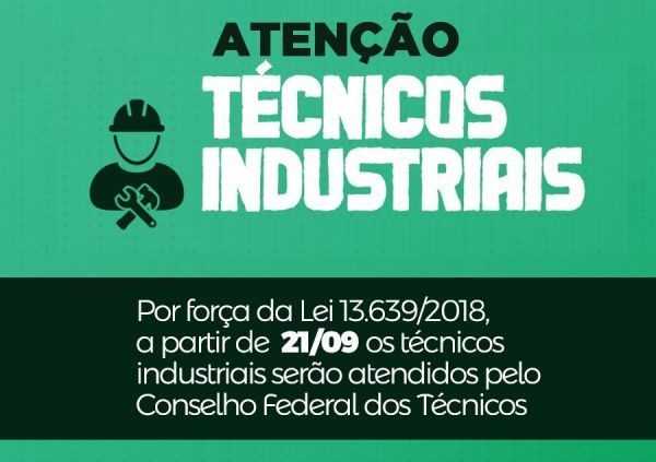 Dessa forma, atendendo ao disposto na Lei e em cumprimento ao Decreto 9461 de 8 de agosto de 2018, desde 21 de setembro, o Sistema Confea/Crea está impossibilitado de prestar serviços aos técnicos industriais, passando essa responsabilidade ao Conselho Federal dos Técnicos Industriais. Ressaltamos que permanece, até data indeterminada, a prestação de serviços aos técnicos agrícolas.