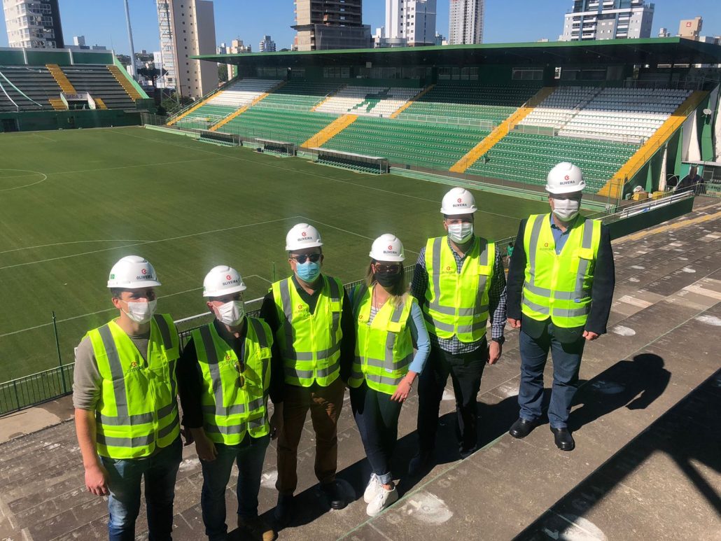A comitiva do Conselho vistou as obras de reforma e ampliação da Arena Condá, que prevê cobertura metálica, camarotes, área de convivência e até espaço para futuro museu. Além do presidente, estavam presentes o chefe de gabinete, Eng. Agr. Felipe Penter, a coordenadora da Assessoria de Apoio às Instituições de Ensino do CREA-SC, Eng. Civil e Seg. Trab. Caroline Burtet, o presidente da AEAO, Eng. Civil Mauro Antônio de Couet, a presidente do CAU/SC, Patrícia Sarquis Herden, o presidente do Sinduscon, Marco Aurélio Alberton, o presidente da Cooperalfa de Chapecó, Romeo Bet, além de alguns profissionais da região.