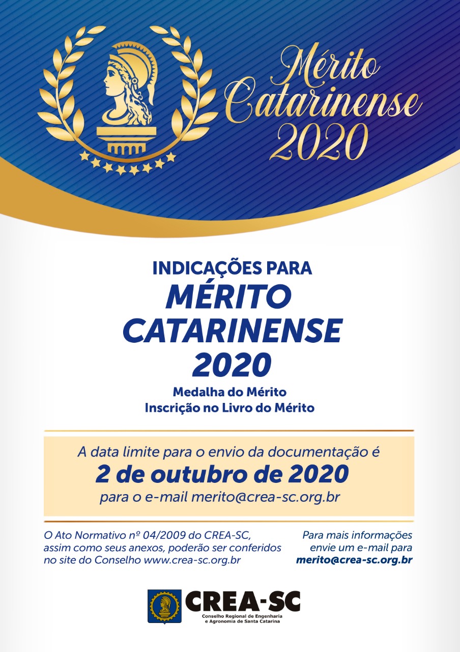 O Conselho Regional de Engenharia e Agronomia de Santa Catarina (CREA-SC) homenageia anualmente profissionais, empresas, entidades de classe e instituições de ensino que se destacam na área da Engenharia e Agronomia, concedendo Medalhas do Mérito e Inscrições no Livro do Mérito Catarinense. Esta homenagem segue os critérios estabelecidos no Ato Normativo nº 04/2009 do CREA-SC.