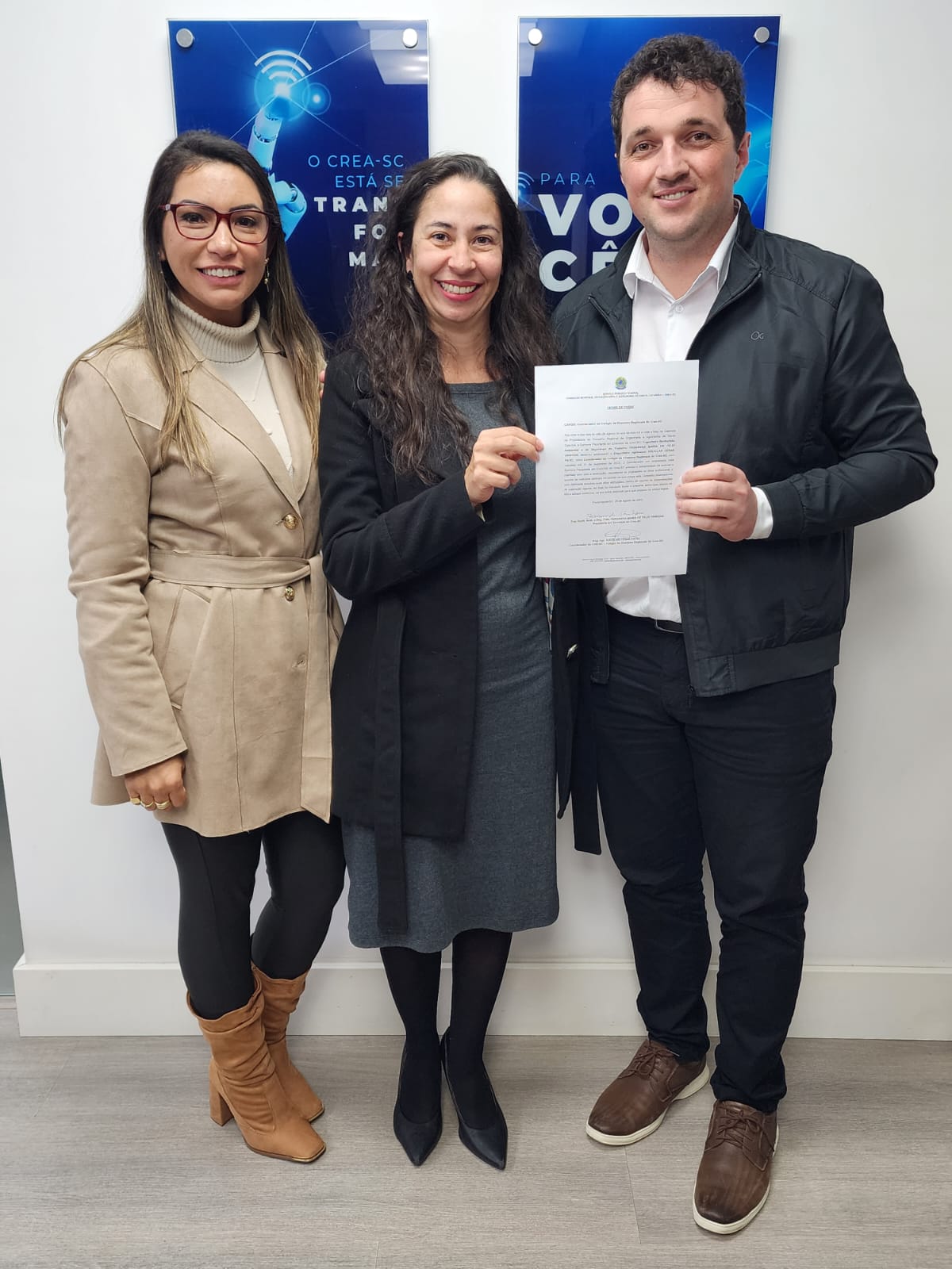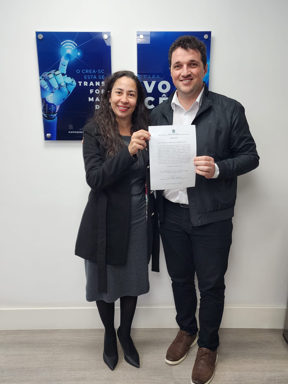 Tomaram posse oficialmente nesta segunda-feira (28.08), na sede do Conselho, em Florianópolis, os novos coordenadores do Colégio de Diretores Regionais (CDR), do CREA-SC. Assumiu, como coordenador, o diretor regional de São Miguel do Oeste, Eng. Agr. Douglas Patel e como coordenadora adjunta, a diretora regional de Criciúma, Eng. Civil Kamila Rodrigues da Silva.