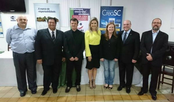 O Eng. Civil Fábio Luiz Gehlen tomou posse na noite desta terça-feira (31/01) a para presidência da Sociedade de Engenharia, Arquitetura e Agronomia do Alto Irani (SEAI). A solenidade contou com a presença do presidente do CREA-SC, Eng. Civil e Seg. Trab. Carlos Alberto Kita Xavier; da Eng. Civil Caroline Burtet, assessora de relações institucionais do Conselho; do diretor regional da Inspetoria de Xanxerê, Eng. Agr. Edilson Palavro; dos conselheiros Eng. Mec. Sergio Zanella e da eng. Agr. Marciele Macari e do diretor geral da Mútua-SC, Eng. Agr. Luiz Carlos Coelho, além do vice-prefeito Ivan Marques e do presidente da Câmara de Vereadores de Xanxerê, Adriano de Martini. A nova diretoria tem mandato para gestão 2017/2018.