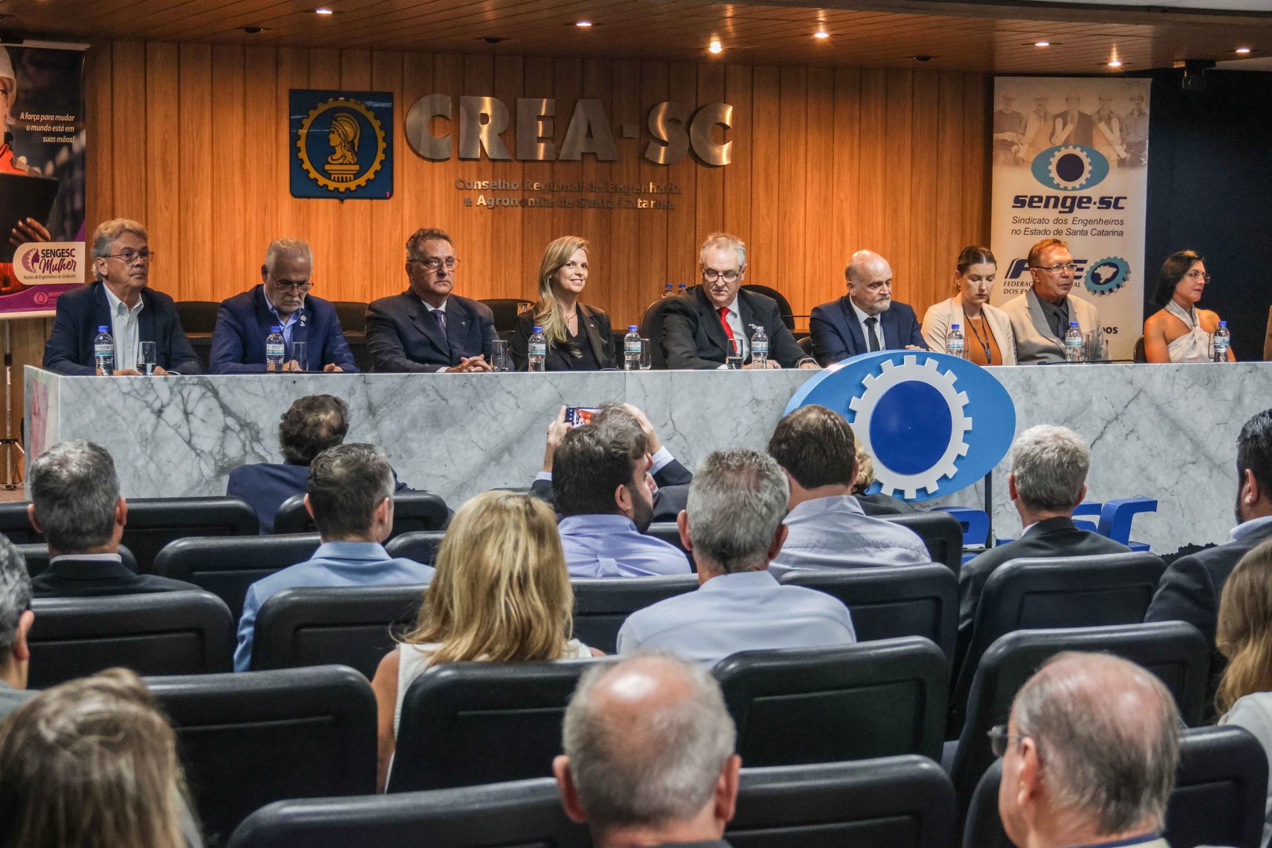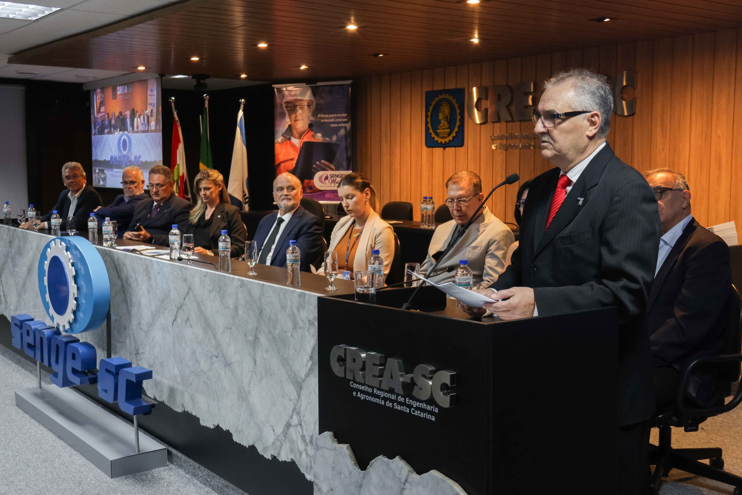“O Crea-SC está honrado em receber a posse de uma entidade tão importante como o Senge-SC e à Roberta desejo um excelente trabalho. Sintam-se todos abraçados pelo Crea-SC”, Moacyr Rogério Deschamps, 2º Vice-Presidente do Crea-SC