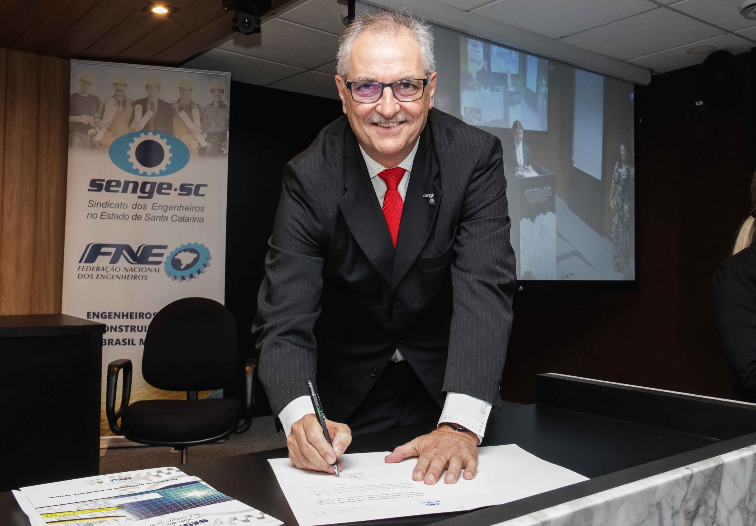 “Essa mesa tão representativa confirma a força do Senge-SC. Sinto muita alegria por ver uma presidente mulher, em quem depositamos toda a nossa confiança. Tenham a certeza do nosso apoio e mantenham sempre a esperança de um país melhor, com o apoio da engenharia, pois juntos podemos fazer a diferença”, Murilo Celso de Campos Pinheiro, presidente da Federação Nacional dos Engenheiros (FNE)