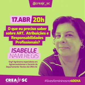 Convidada: Isabelle Nami Regis – Engª Agrônoma especialista em Agroecossistemas e Gerente do Departamento Técnico do CREA-SC
