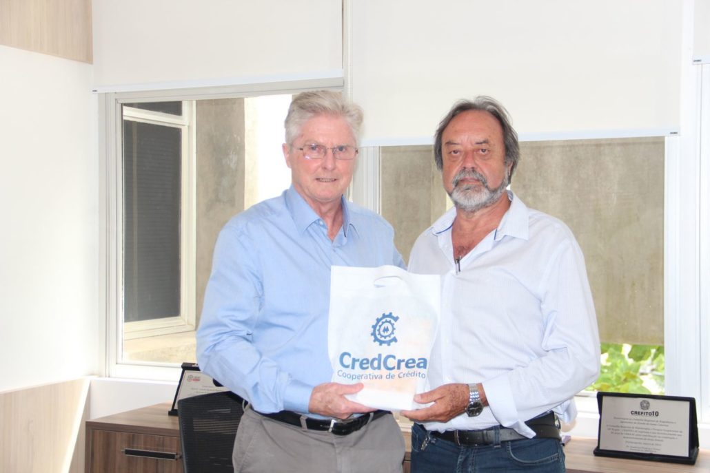 Na tarde de hoje o presidente do CREA-SC, Eng. Agr. Ari Neumann e o assessor da presidência, Eng. Agr. Luiz Carlos Coelho estiveram em reunião com a diretoria da Cooperativa de Crédito dos Profissionais. Além do presidente da CredCrea, Eng. Civil Gelásio Gomes, participaram o Diretor de Risco e Administrativo, Diniz Busanello, o Diretor Executivo César Augusto Fabre e a gerente de relacionamentos Regina Pacheco. Entre os assuntos discutidos destacam-se resultados da Cooperativa em 2017, metas para esse ano, parceria institucional com o CREA-SC para valorização do profissional e Programa CREAjr.