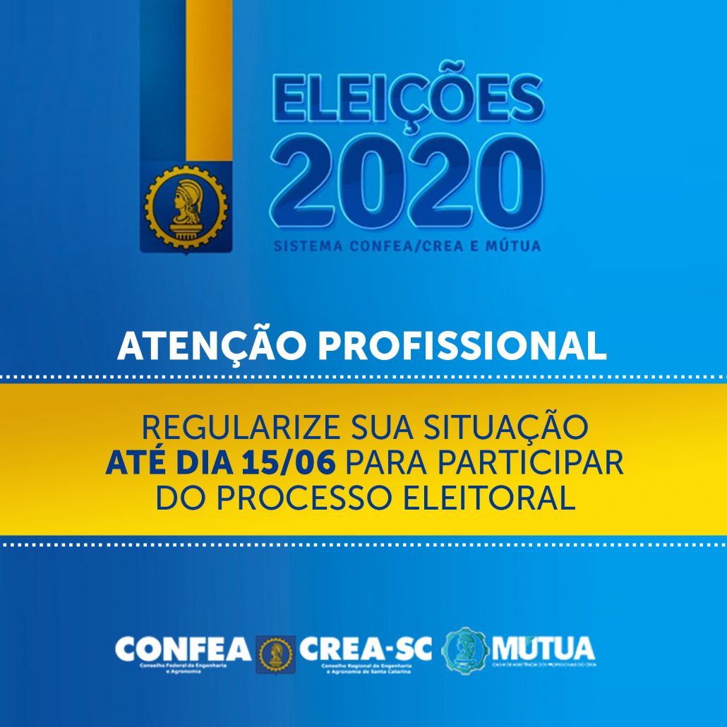 Conforme a deliberação da Comissão Eleitoral Federal (CEF) nº 90/2020, sobre o Calendário Eleitoral das Eleições 2020 para Presidente do Confea e dos Creas, Conselheiro Federal e Diretores Regionais da Mútua, ficam alteradas as datas das Eleições 2020, conforme segue: