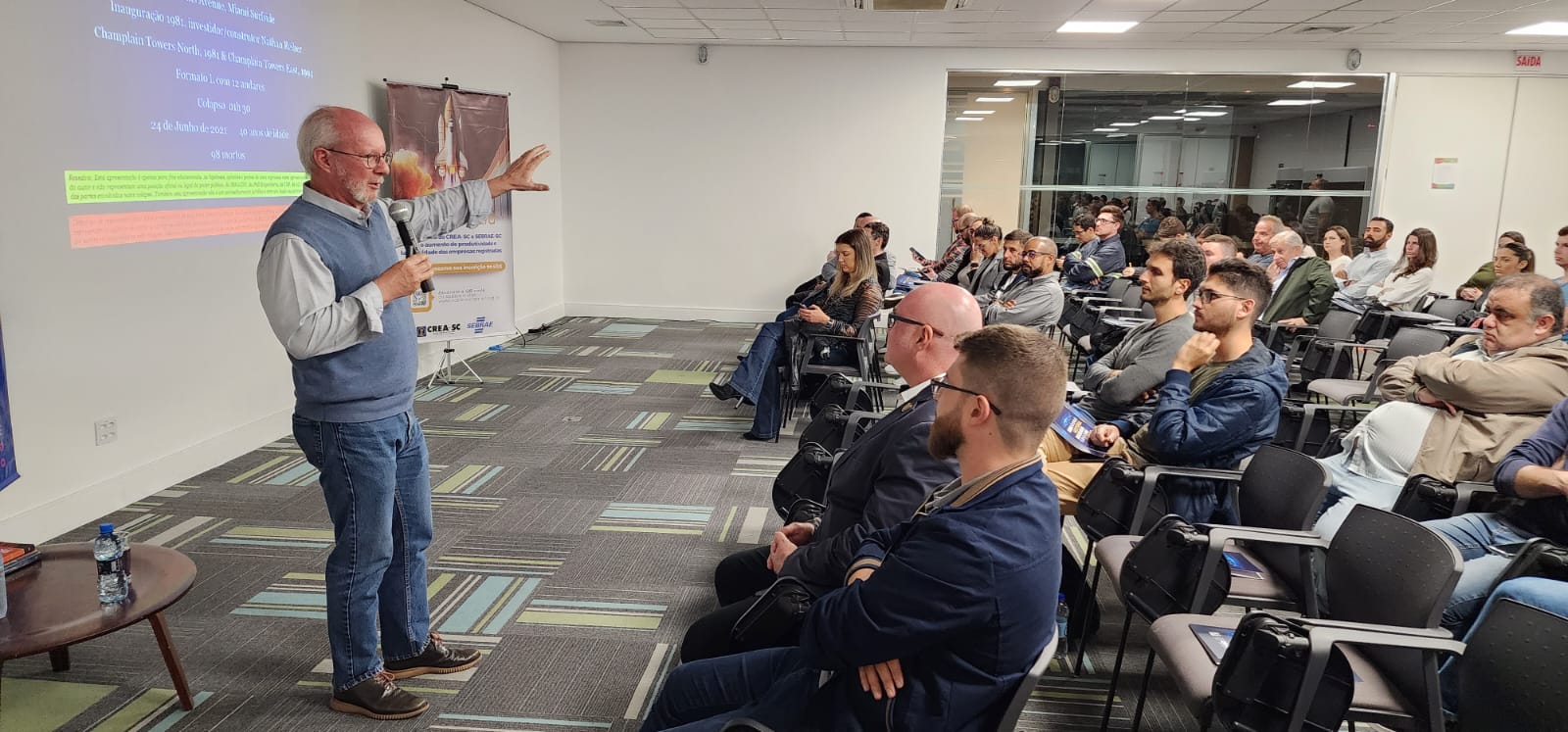 O Crea-SC em parceria com o  IBRACON – Instituto Brasileiro do Concreto realizou nesta terça-feira, 4, na Acate, em Florianópolis a palestra “Lições aprendida com Colapso do Edifício em Miami. Anatomia de uma tragédia”, com Eng. Civil Paulo Helene, especialista em “Patología de las Construcciones”, pelo Instituto Eduardo Torroja. O professor e conselheiro permanente do IBRACON é autor dos livros “Patologia de estruturas” e “Corrosão em Estruturas de Concreto Armado: Teoria, Controle e Métodos de Análise” e co-autor de outras obras sobre concreto, reabilitação de estruturas e corrosão e materiais.