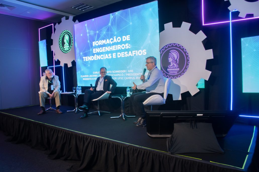 Os desafios enfrentados pela engenharia e para o profissional do futuro foram temas de um dos paineis do CREA Summit 2025, ocorrido 26.07. O debate “Formação de Engenheiros: Tendências e Desafios” contou com a participação de Carlos Alberto Schneider, engenheiro mecânico de formação e membro da Academia Nacional de Engenharia (ANE); Claudio Jacoski, engenheiro de produção, civil, pesquisador e reitor da Unochapecó; e Modesto Ferrer, engenheiro mecânico e professor da UFSC Joinville.
