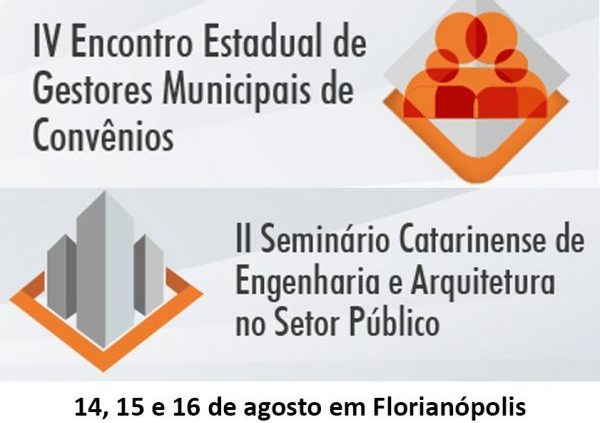 O IV Encontro Estadual de Gestores Municipais de Convênios e o II Seminário Catarinense de Engenharia e Arquitetura no Setor Público, acontece de 14 a 16 de agosto, em Florianópolis, Com promoção da FECAM – Federação Catarinense de Municípios e realização da EGEM – Escola de Gestão Pública Municipal. O evento conta com apoio do CREA-SC e tem como objetivo consolidar e aperfeiçoar o trabalho desenvolvido pelos gestores municipais de convênios, engenheiros e arquitetos sobre as práticas da transferência voluntária de recursos das esferas federal e estadual. Busca também aprimorar a prática e o gerenciamento de convênios relacionados à captação de recursos.