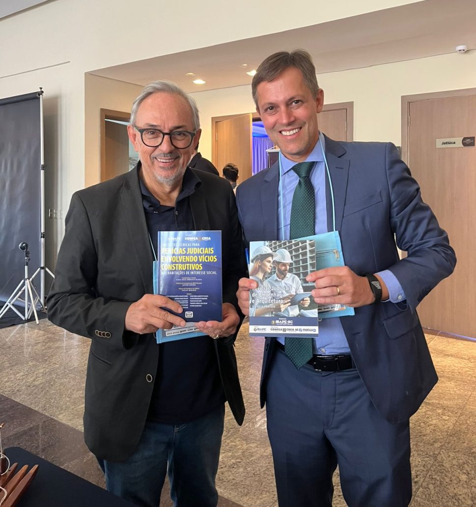 Durante o seminário, foi entregue ao representante do CONFEA, o Conselheiro Federal Engenheiro Neemias Machado Barbosa, o livro “Perícias Judiciais de Engenharia e Arquitetura: Um Guia Prático”, apoiado pelo Crea-SC por meio da Política de Patrocínio, e também pelo sistema Confea/Crea/Mutua. A publicação também foi entregue ao presidente do IBAPE Nacional, Luciano Ventura, e a todos os presidentes dos IBAPEs estaduais presentes. Na mesma ocasião, Sérgio Becke também participou da convocação da 189ª e 190ª Assembleia Geral Extraordinária do IBAPE/ABRAP.