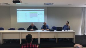 Participação do presidente do CREA-SC, Eng. Ari Geraldo Neumann; do gerente de fiscalização, Eng. Agr. Felipe Penter e do gerente de atendimento, José Eduardo Marcolino.