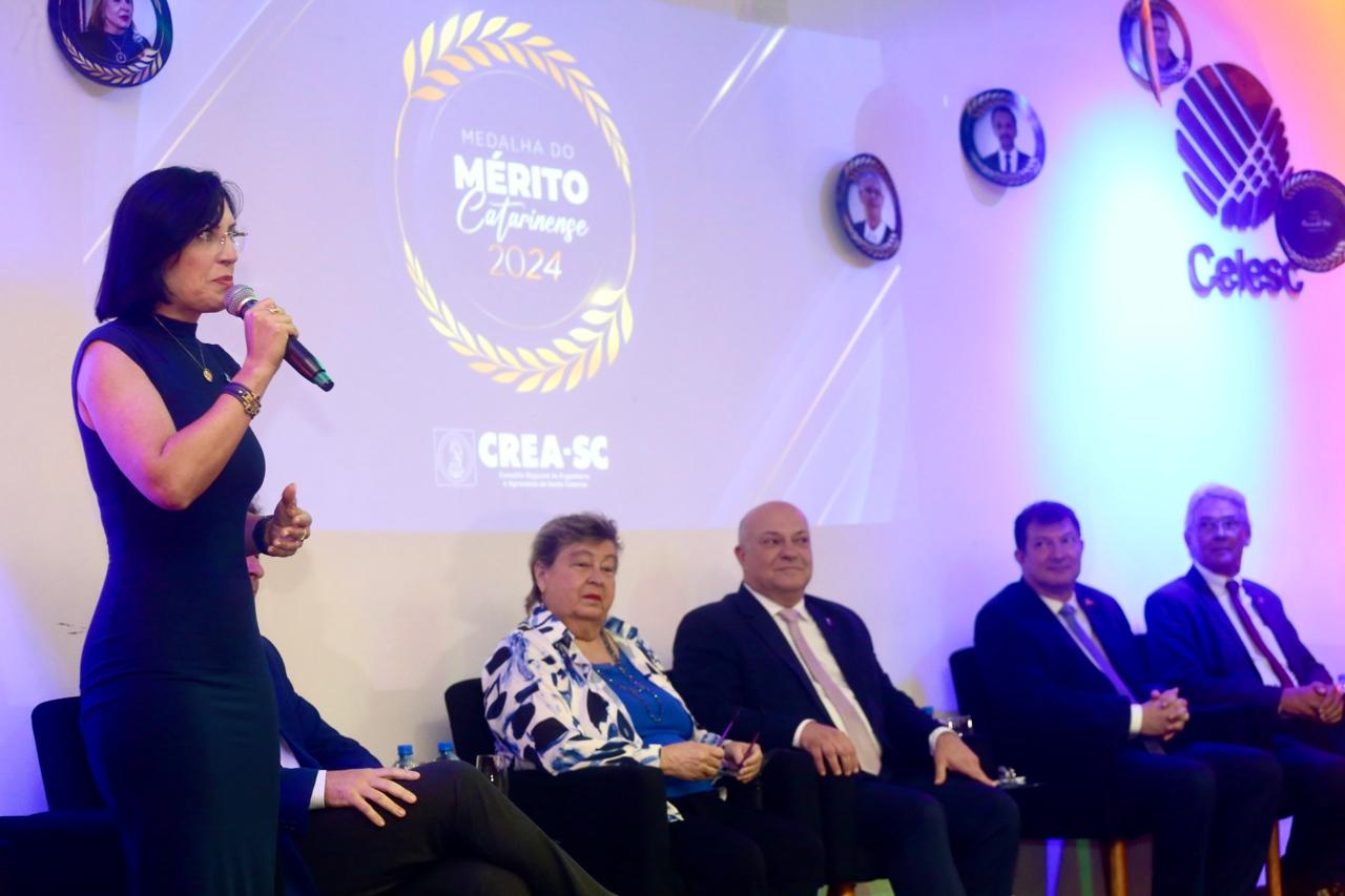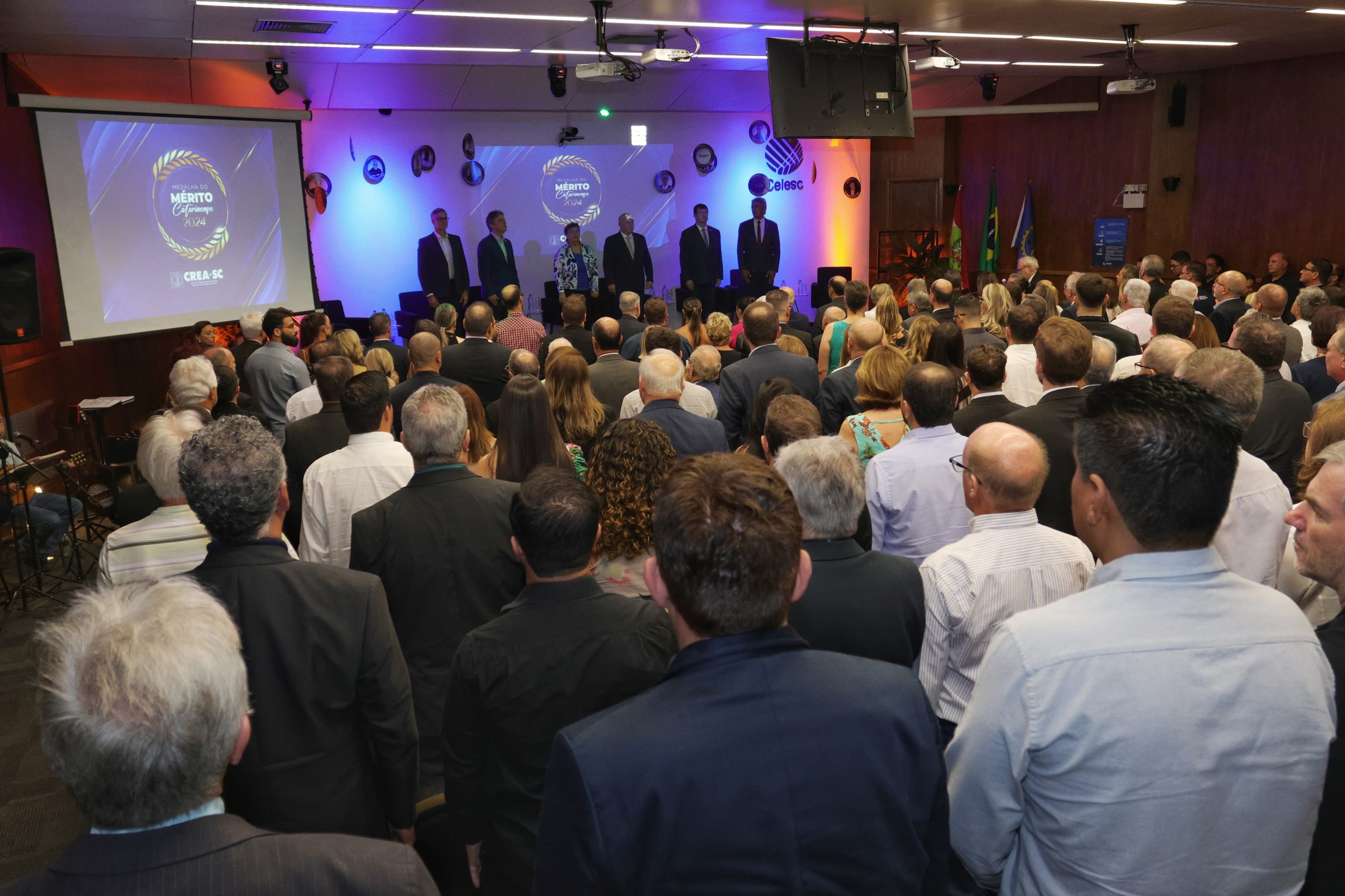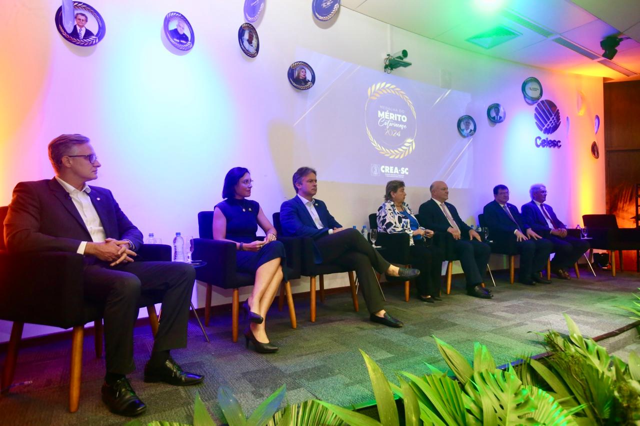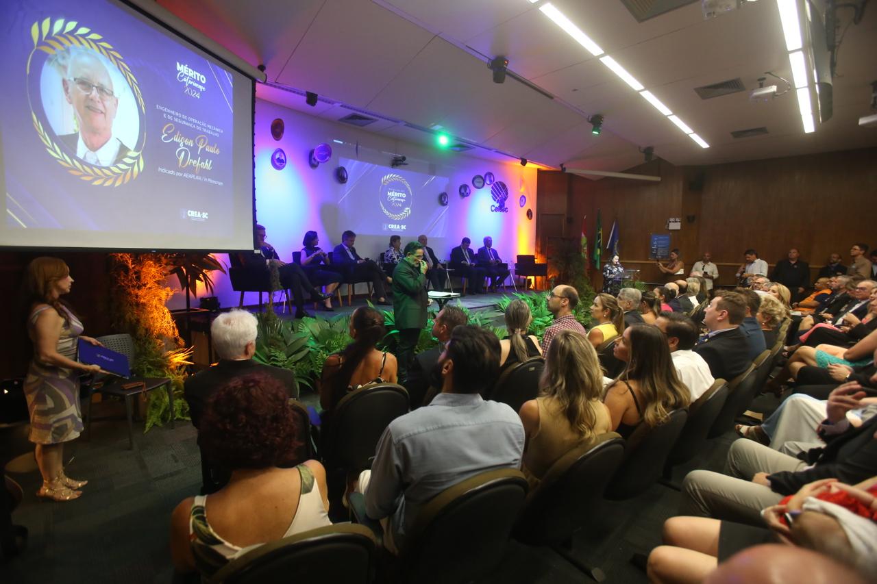 O evento realizado na Celesc, em Florianópolis, reuniu homenageados, familiares, autoridades, diretores, conselheiros, profissionais e colaboradores. No total foram oito profissionais premiados com a Medalha do Mérito, quatro com a Inscrição no Livro do Mérito, além de três Menções Honrosas para empresas e instituições catarinenses.