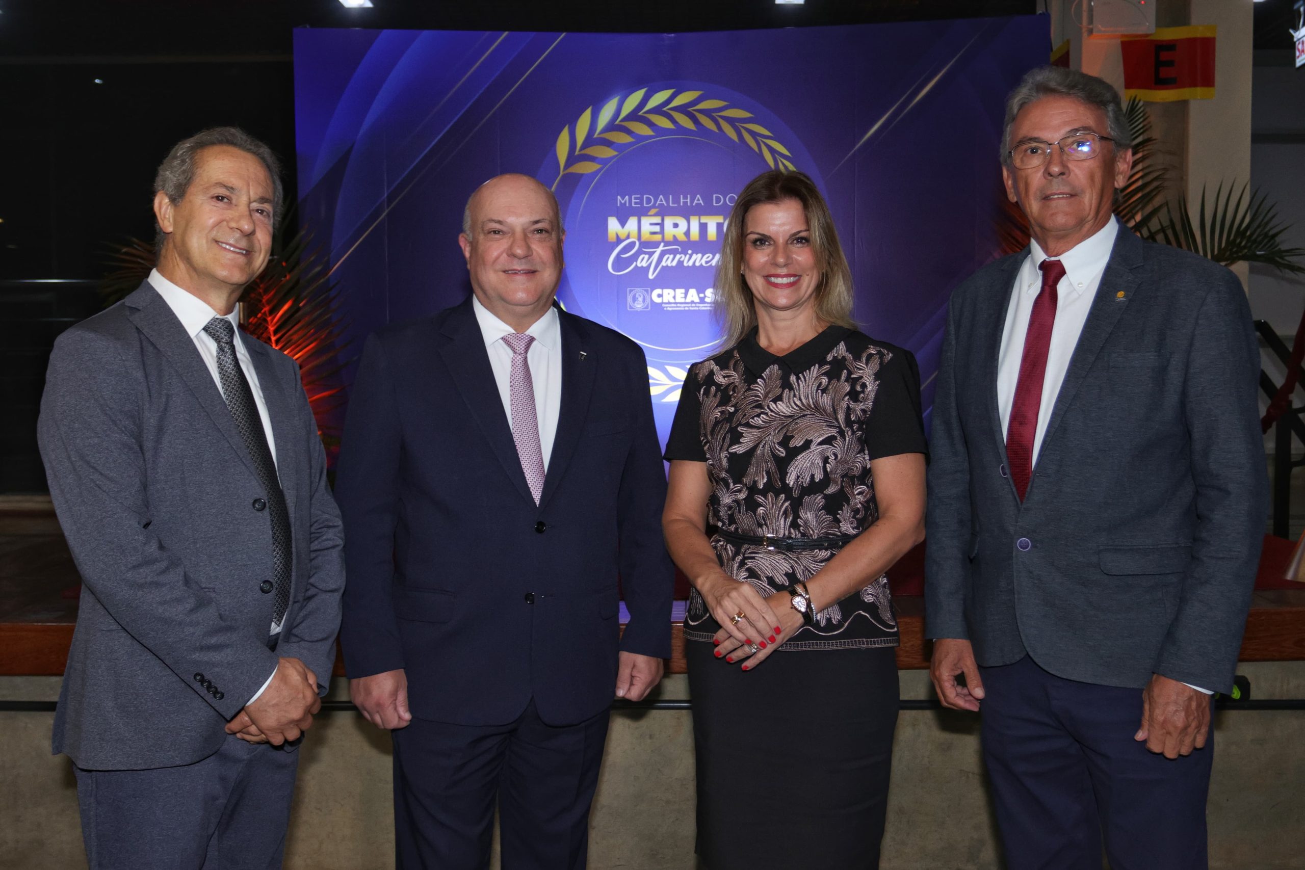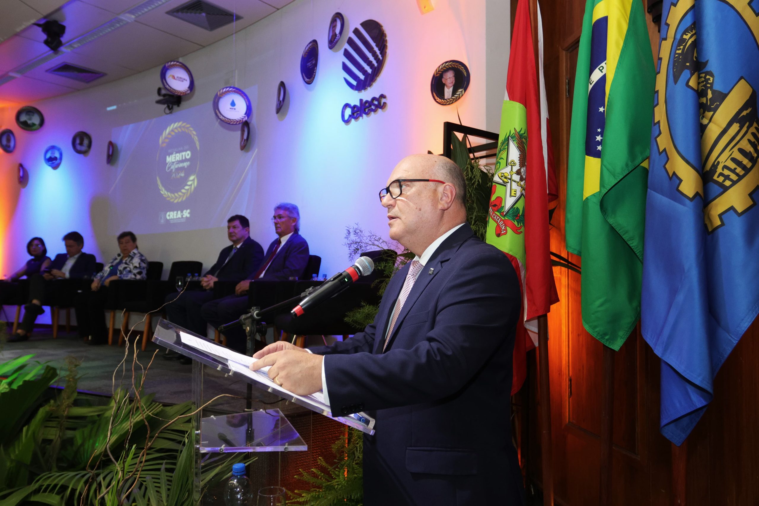 Também integraram o longe de autoridades: a conselheira federal e chanceler da Comissão do Mérito, Eng. Carmen Lúcia Petraglia, representando o Confea; o diretor de benefícios da Mútua Nacional, Eng. Evânio Nicoleit; o secretário da ciência, tecnologia e inovação, Marcelo Fett; o deputado estadual Matheus Cadorin, representado a ALESC; a prefeita interina de Florianópolis, Maryanne Mattos; o presidente do Crea-PR, Eng. Clodomir Ascari; e o presidente da Celesc, Eng. Tarcisio Rosa.