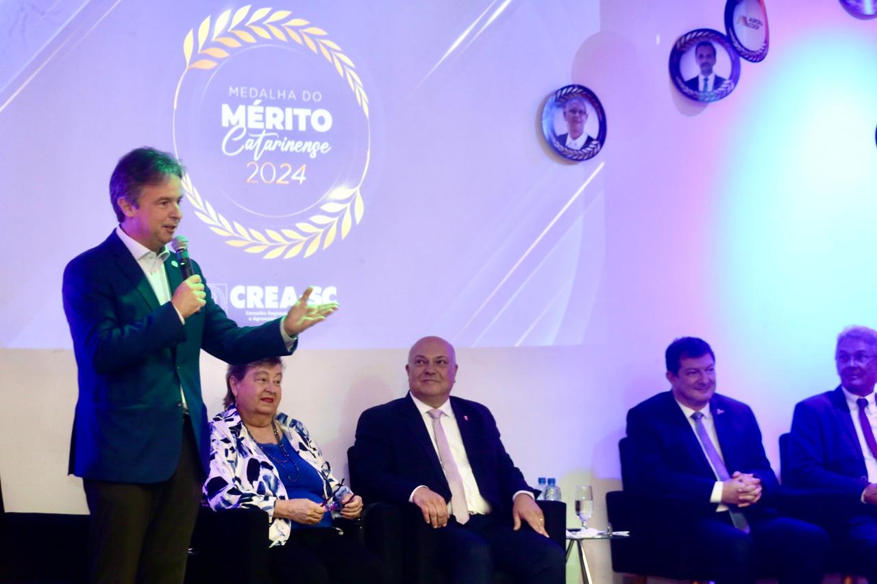 “Estamos aqui para reconhecer e valorizar as competências dos profissionais, empresas, instituições e também daqueles que já nos deixaram e contribuíram com o aperfeiçoamento da engenharia, agronomia, geociências em Santa Catarina”, afirmou o presidente do CREA-SC, Eng. Kita Xavier durante a cerimonia da Medalha do Mérito Catarinense, na noite desta quinta-feira (13).