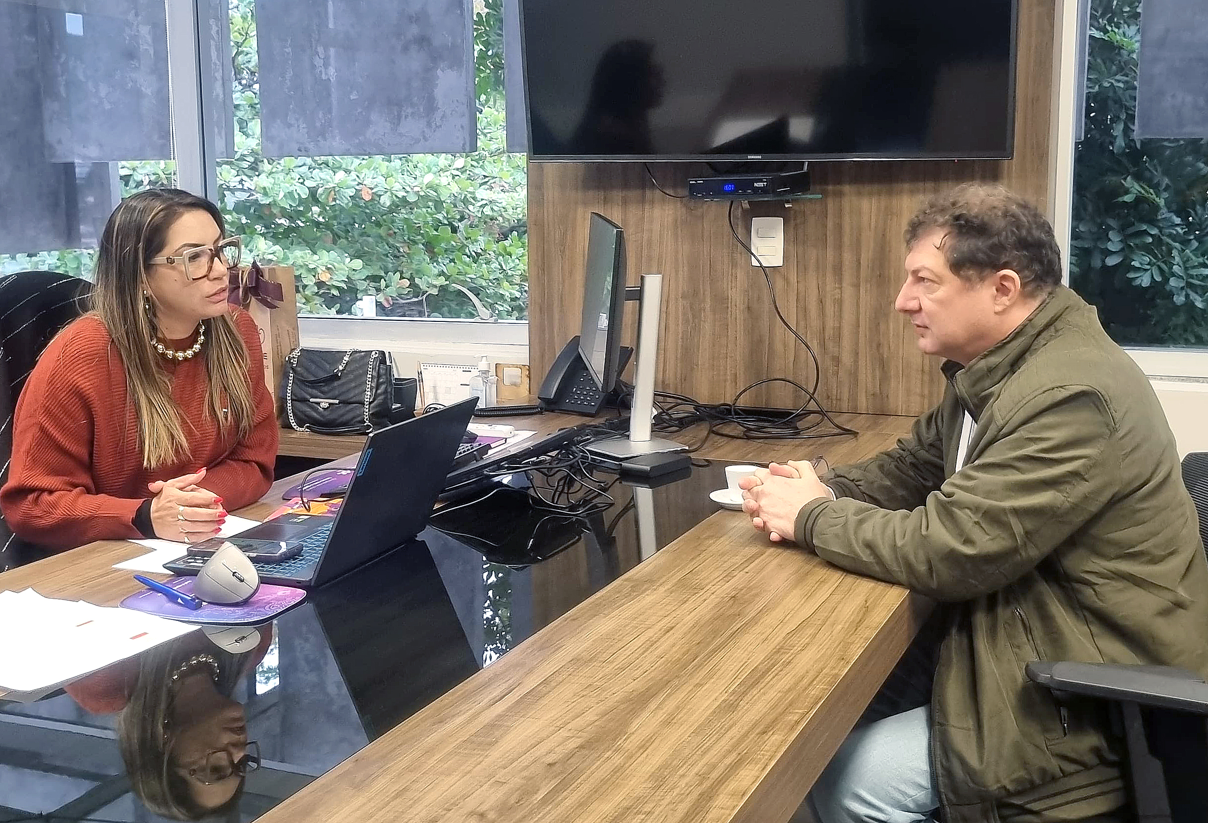 A presidente em exercício do CREA-SC, Eng. Kamila Rodrigues, recebeu nesta sexta-feira (27) o diretor de Benefícios e Vice-Presidente da Mútua Nacional, Eng. Evânio Nicoleit, em audiência institucional que consolidou apoios importantes aos eventos do Conselho em 2025. Presença também do superintende Eng. Flavio Schäfer.