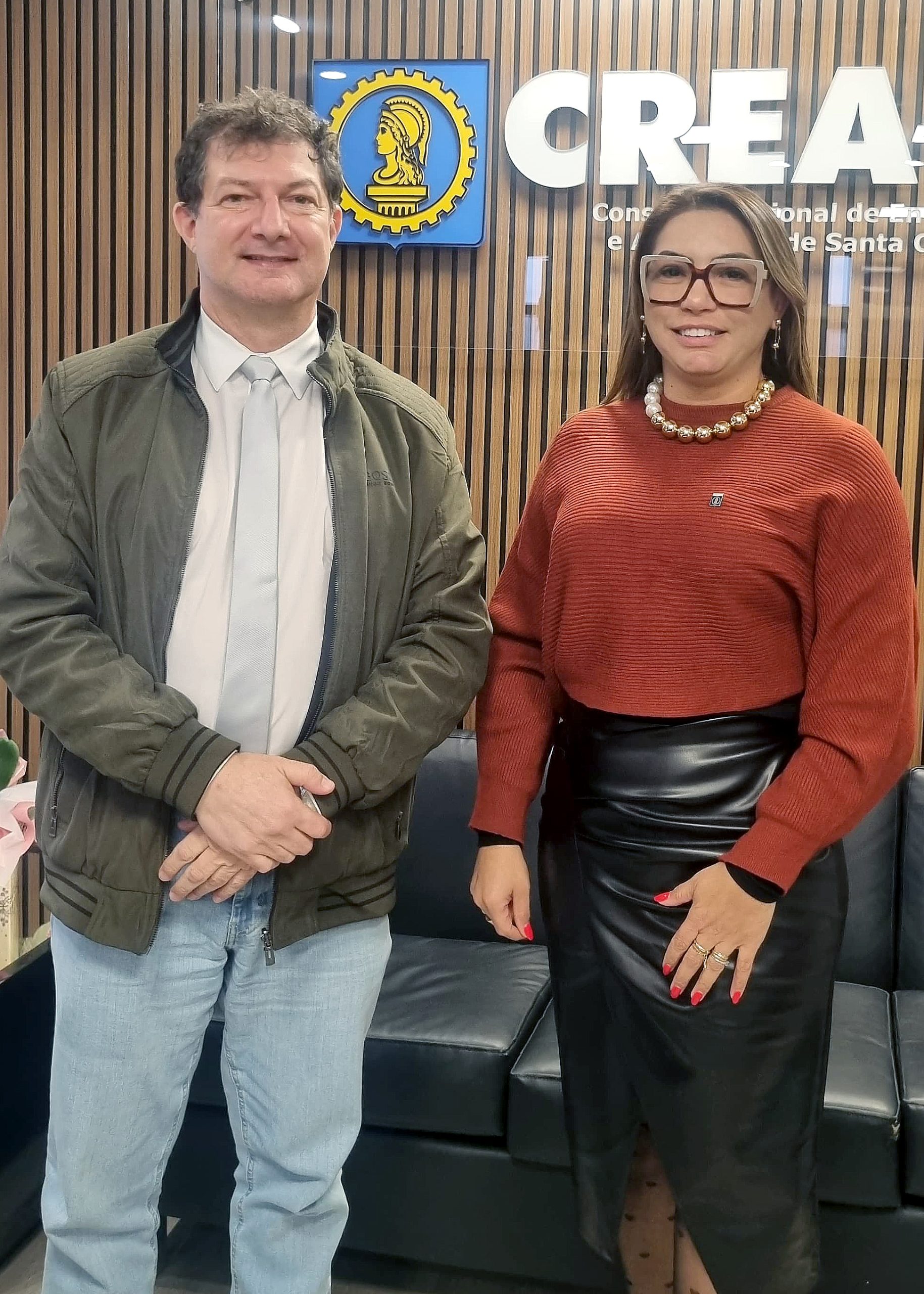 Diretor de benefícios e vice-presidente da Mútua Nacional, Eng. Evânio Nicoleit e a presidente em exercício do CREA-SC, Eng. Kamila Rodrigues