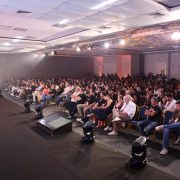 Professor Albeni recebendo homenagem do conselheiro Adilson, em 2019, na Furb.