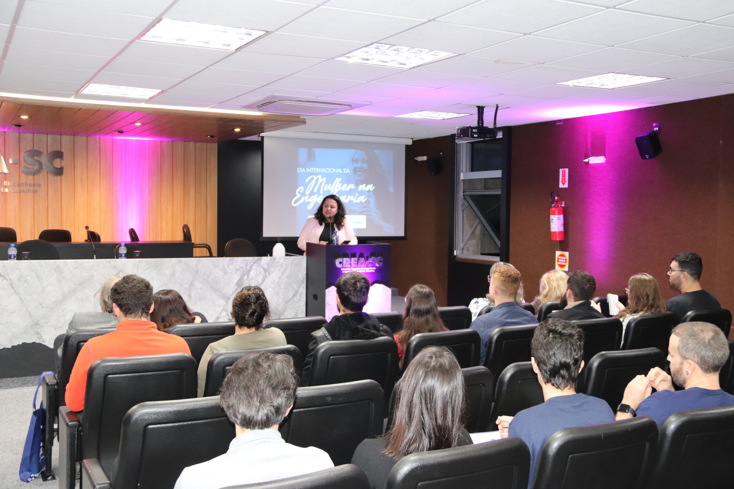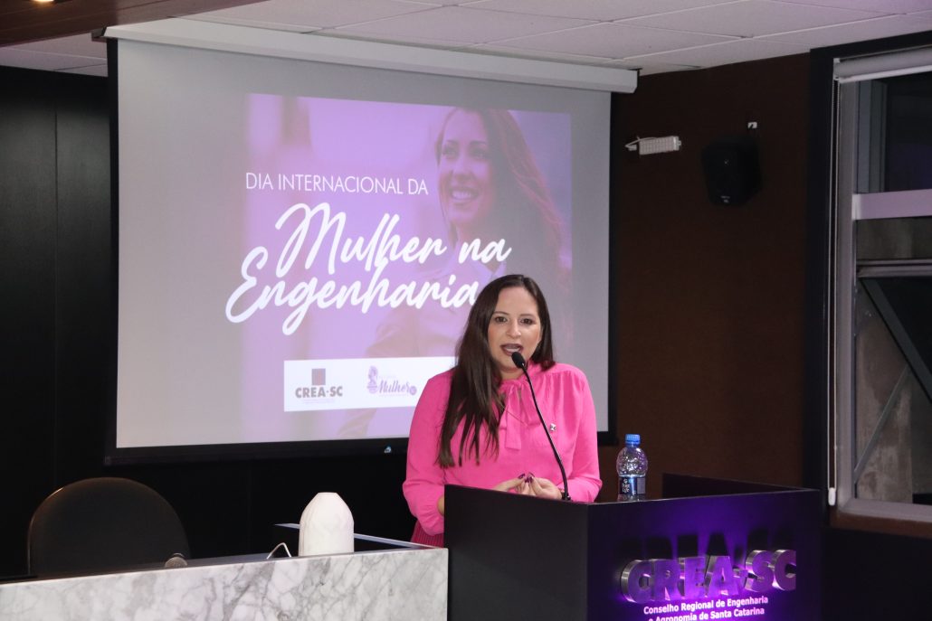Em comemoração ao Dia Internacional da Mulher na Engenharia, o Comitê Mulher do CREA-SC promoveu no dia 23 de junho, às 19h30, na sede do Conselho em Florianópolis, a palestra com o tema: “Trajetória da Mulher na Engenharia e Geociências”, ministrada pela Eng. Civil Dra. Gisele Marília Pereira Reginatto. O evento teve transmissão ao vivo pelo canal youtube.com/creasc.