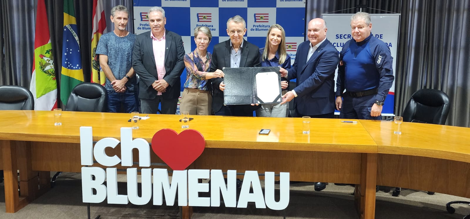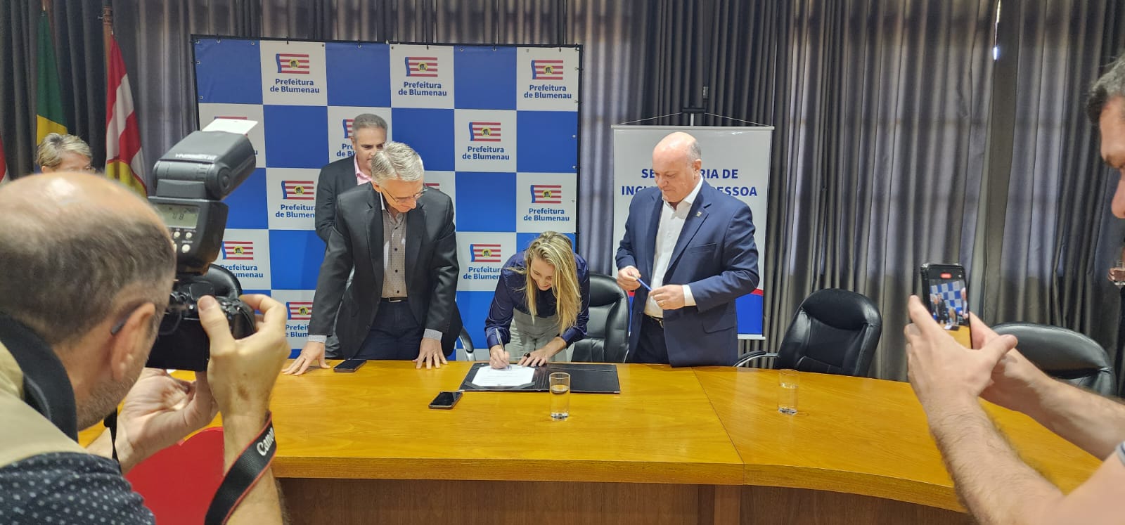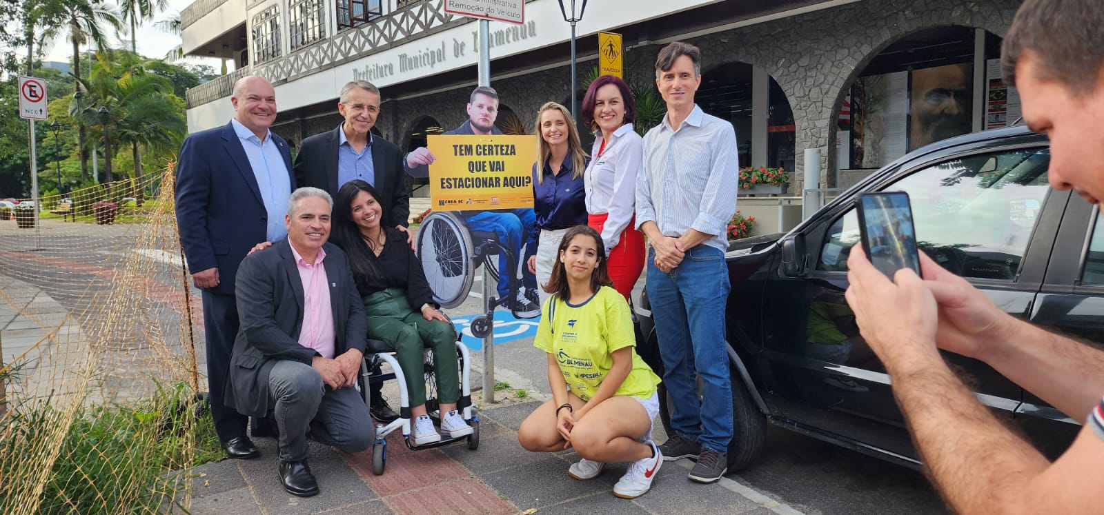 Nesta terça-feira, 2, o Crea-SC firmou com a prefeitura de Blumenau o convênio de adesão do município ao Programa de Conscientização à Acessibilidade do Conselho. O objetivo da campanha é fomentar o uso adequado das vagas preferenciais de estacionamento da cidade, incentivando o respeito às placas de identificação que sinalizam as vagas exclusivas para deficientes físicos e idosos. Além de auxiliar na mobilidade das escolas em horários de pico, conscientizando os motoristas sobre a irregularidade de parar em fila dupla.