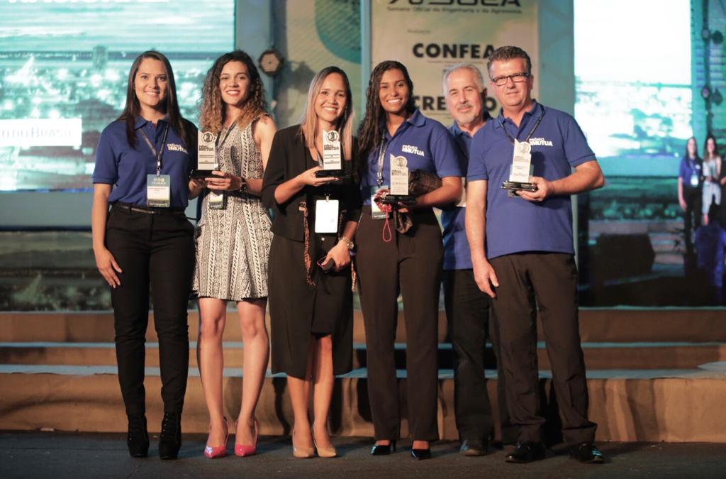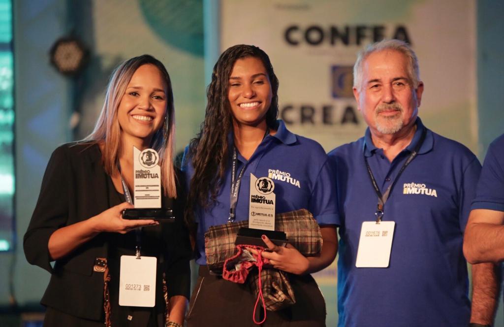 O engenheiro civil Caetano Palma Neto, de Santa Catarina, e as estudantes de Engenharia Ambiental, Laryssa Souza Alvarenga, do Espírito Santo, e de Engenharia de Produção, Luiza Helena do Vale Correa, do Pará, receberam, na manhã desta quarta-feira (18), o troféu do Prêmio Mútua 2019. A cerimônia ocorreu dentro da programação da 76ª Semana Oficial de Engenharia e de Agronomia, em Palmas (TO), evento que se prolonga até essa quinta (19). Todos os projetos estão em exibição no estande da Mútua.