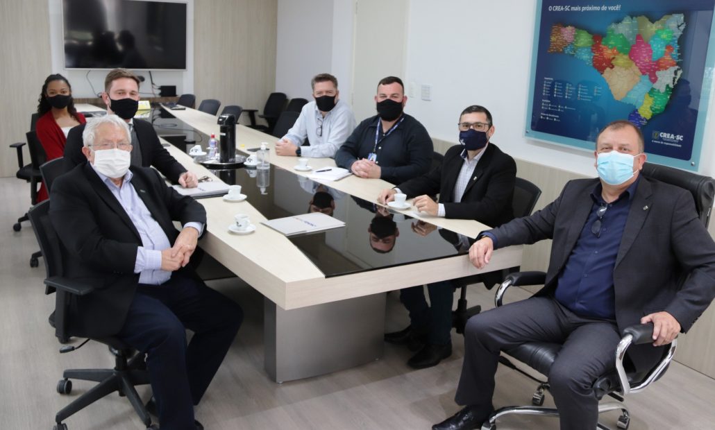 Também participaram da reunião o gerente de fiscalização do CREA-SC, Eng. Amb. Ingo Eugênio Dal Pont Werncke, o assessor da presidência, Eng. Agr. Celso Lopes de Albuquerque Júnior, e o assessor de Relações Institucionais, Eng. Civil Flávio Schafer.