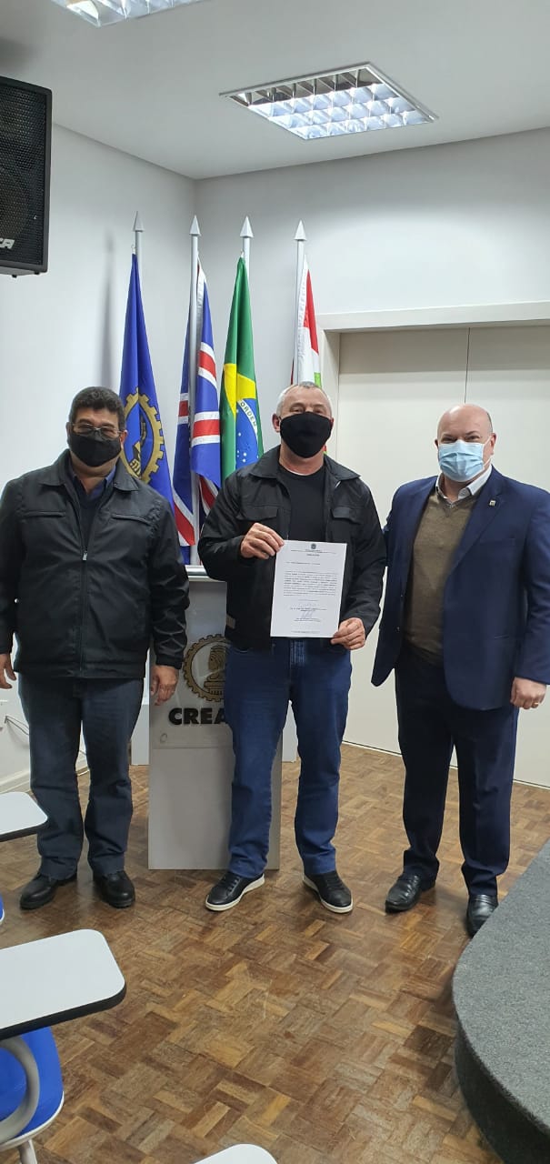 O presidente do Crea-SC Eng. Civil Seg. Trab. Carlos Alberto Kita Xavier deu posse nesta quarta-feira, 7, ao novo Diretor Regional de Caçador, Eng. Agrônomo Flávio Tadeu Carneiro e ao colegiado de inspetores do município. A cerimônia foi realizada na Inspetoria do Conselho da região.