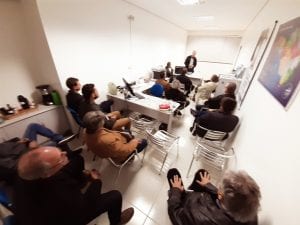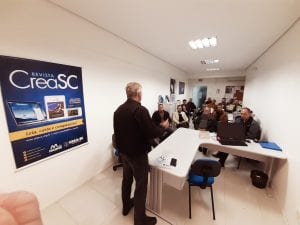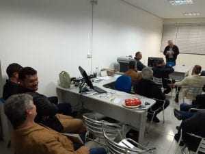 O presidente do CREA-SC, Eng. Agr. Ari Geraldo Neumann, reuniu-se nesta segunda-feira (5) com profissionais do Centro de Engenheiros e Agrônomos de Timbó (CEAT). O encontro contou com a participação do presidente da entidade, Eng. Civil Elenio Mannes. Valorização profissional, fiscalização, atendimento aos profissionais, a engenharia e a agronomia em Santa Catarina, foram temas em discussão. O presidente Ari fez também uma apresentação sobre as principais ações e projetos do Conselho no estado.