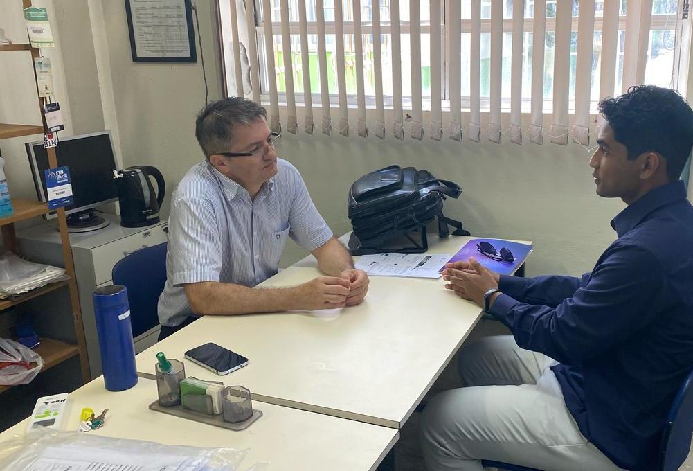 O assessor de integração profissional do Crea-SC, tecnól. gestão amb. Rodrigo Rudolf Espíndola esteve no IFSC essa terça-feira, 25.02, em reunião com Samuel João da Silveira, eng. civil e professor articulador de estágio obrigatório do curso de engenharia civil. A conversa foi sobre o projeto Soft SKills, parceria na área da civil para aproximar os acadêmicos do programa. O coordenador regional Creajr de Florianopolis, acadêmico de engenharia de aquicultura da Ufsc, Jhony Christyan acompanhou a visita.