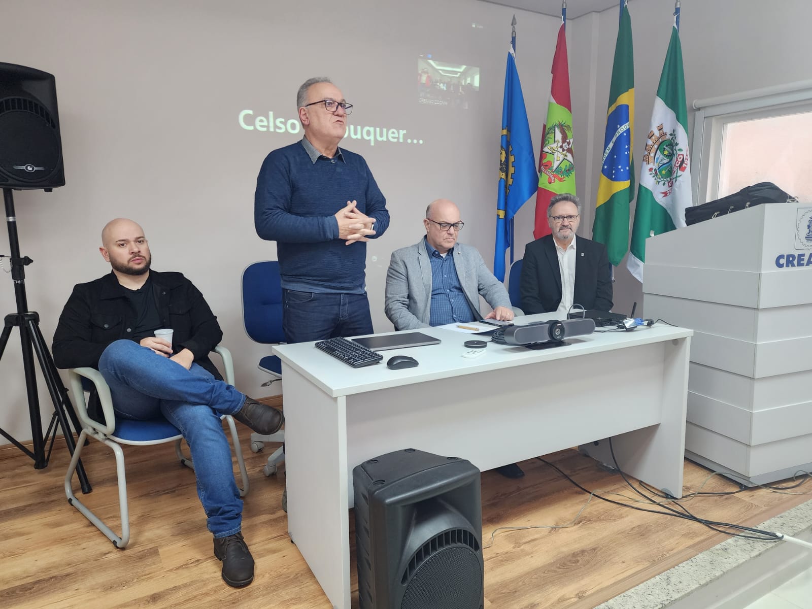 O presidente visitou ainda o Polo de Inovação da Unochapecó, acompanhado do Reitor e conselheiro do CREA-SC, Prof. Eng. Civil Claudio Alcides Jacoski. Esteve também em audiência com o secretário de desenvolvimento sustentável e obras públicas do município, Valmor Junior Scolari, junto com o inspetor, Eng. Álvaro Michelotto.