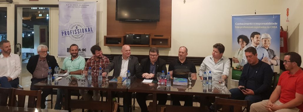 Além dos processos e diretrizes das ações de fiscalização, estiveram em pauta ações e projetos institucionais do Conselho e de valorização profissional na área da engenharia, agronomia e geociências, entre eles a Unicrea – Universidade Corporativa e o evento Start Inovação CREA-SC, em Florianópolis marcando o lançamento da Política de Inovação.