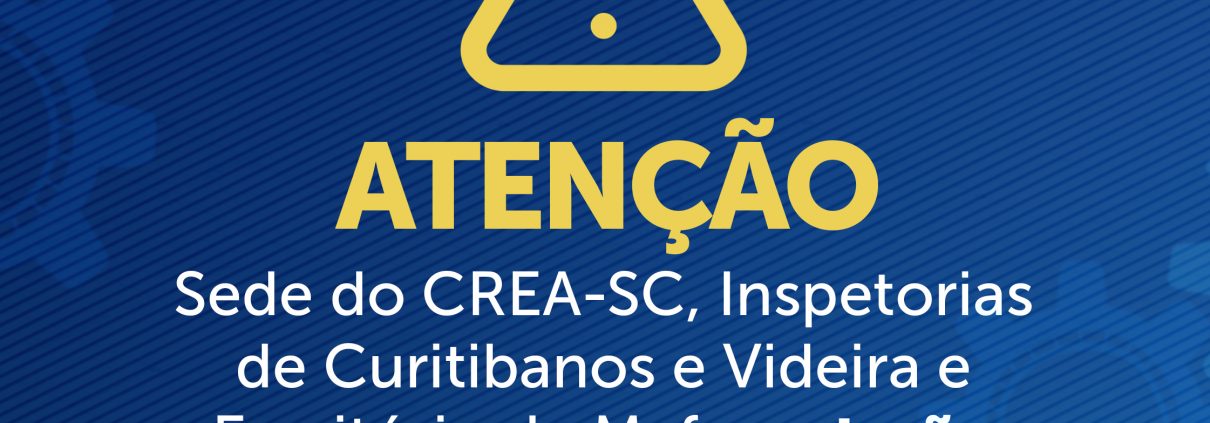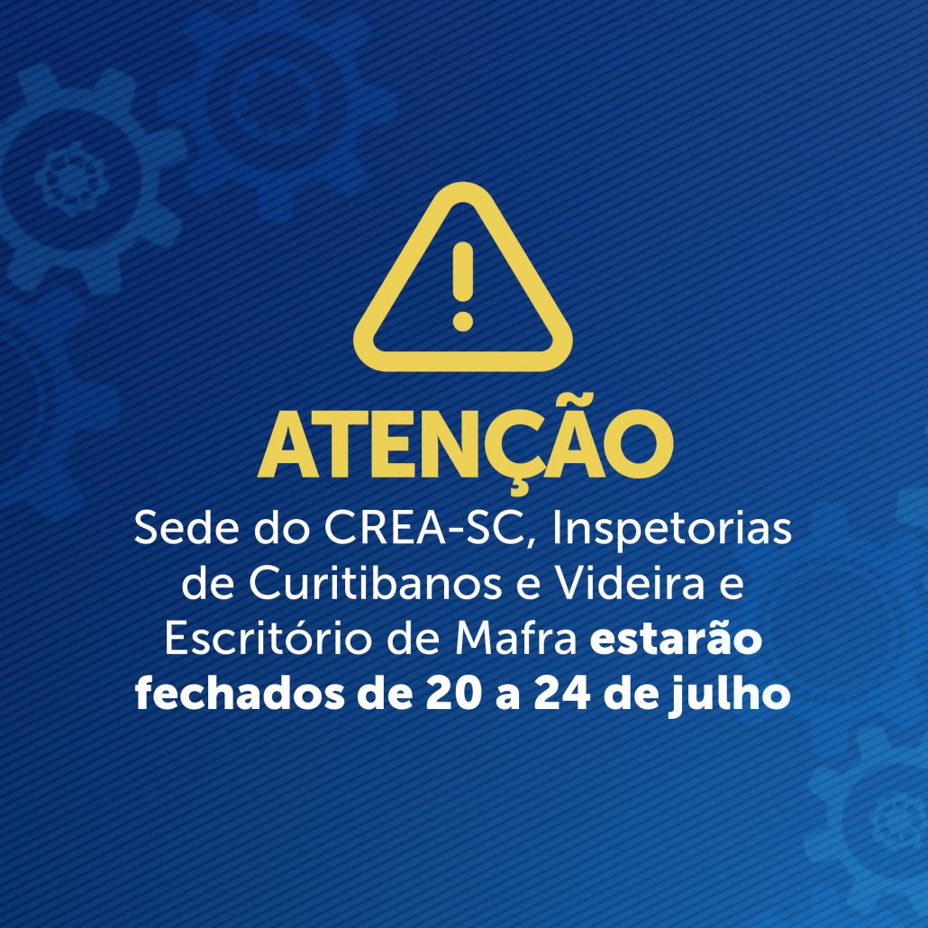 Sede do CREA-SC, inspetorias de Curitibanos e Videira e escritório de Mafra estarão fechados de 20 a 24 de julho