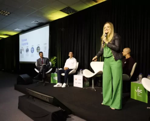 A sucessão familiar também foi pauta no SC Que Dá Certo, com o relato de Dayanne de Paula, presidente do Grupo Eletropoll. Para ela, assumir a liderança da empresa fundada pelo pai em 1999 foi um movimento natural, desenvolvido desde jovem.