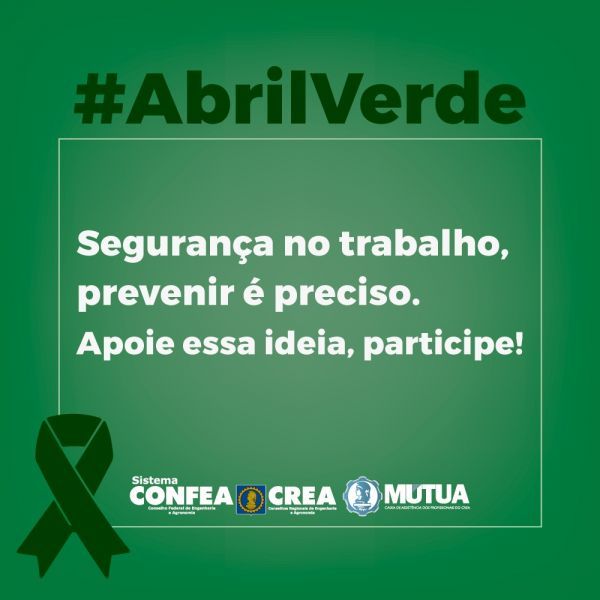 A saúde e a segurança do trabalhador, temas integrados à rotina do Sistema Confea/Crea por meio da atuação das câmaras especializadas de Engenharia de Segurança do Trabalho dos Creas e das entidades da área, são o foco da campanha Abril Verde, do Ministério Público do Trabalho e do Tribunal Superior do Trabalho.