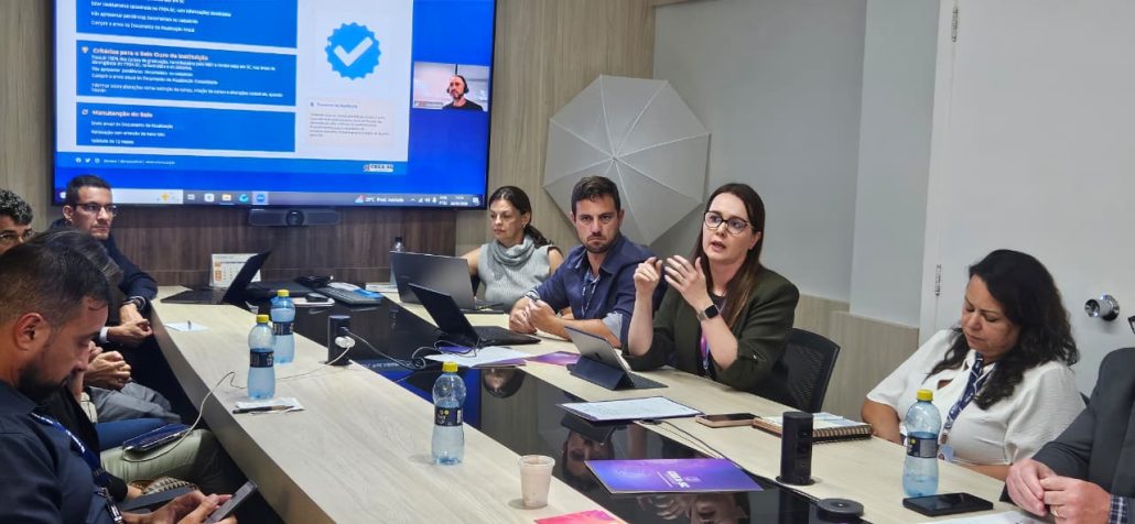 A Assessoria de Apoio às Instituições de Ensino do Crea-SC – APIE apresentou nesta sexta-feira (20), durante a reunião do Fórum Creasul realizada na sede em Florianópolis, o Programa Selo de Conformidade para cursos e instituições de ensino registrados no Conselho. Estavam presentes o presidente Kita Xavier; o presidente do CREA-PR, Clodomir Ascari; a presidente do CREA-RS, Nanci Walter (on-line); a coordenadora nacional do CDER, Rafaela Fabris; a coordenadora da Regional Sul do Confea, Carolina Burtet; além de assessores e dirigentes dos regionais.