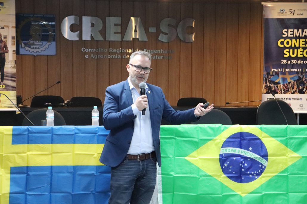 A etapa de Florianópolis encerra nesta quarta-feira (30) a Semana Conexão Suécia 2025, promovida pelo Sindicato dos Engenheiros no Estado de Santa Catarina (Senge-SC) em parceria com o CREA-SC e a Embaixada da Suécia no Brasil. O evento celebrou os 10 anos de cooperação entre instituições catarinenses e suecas, reforçando os laços de inovação e sustentabilidade entre os dois países.